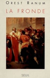 Professeur émérite à l’université Johns-Hopkins de Baltimore, Orest Ranum est l’un des grands spécialistes américains de la France du XVIIe siècle. On lui doit notamment Les Créatures de Richelieu (1966) et Les Parisiens du XVIIe siècle (1973). Paru en anglais en 1993 sous le titre The Fronde: A French Revolution, 1648-1652, son livre a été traduit en français en 1995 aux éditions du Seuil. L’originalité du bouquin tient d’abord à son sous-titre anglais : pour Ranum, la Fronde est bel et bien une révolution française — la première du nom —, c’est-à-dire un moment où la structure même de l’État vacille, où les administrateurs royaux deviennent des hors-la-loi qui refusent de lever l’impôt, et où les magistrats du Parlement cessent de rendre la justice pour se constituer en assemblée délibérative, en un défi direct au Conseil du roi.