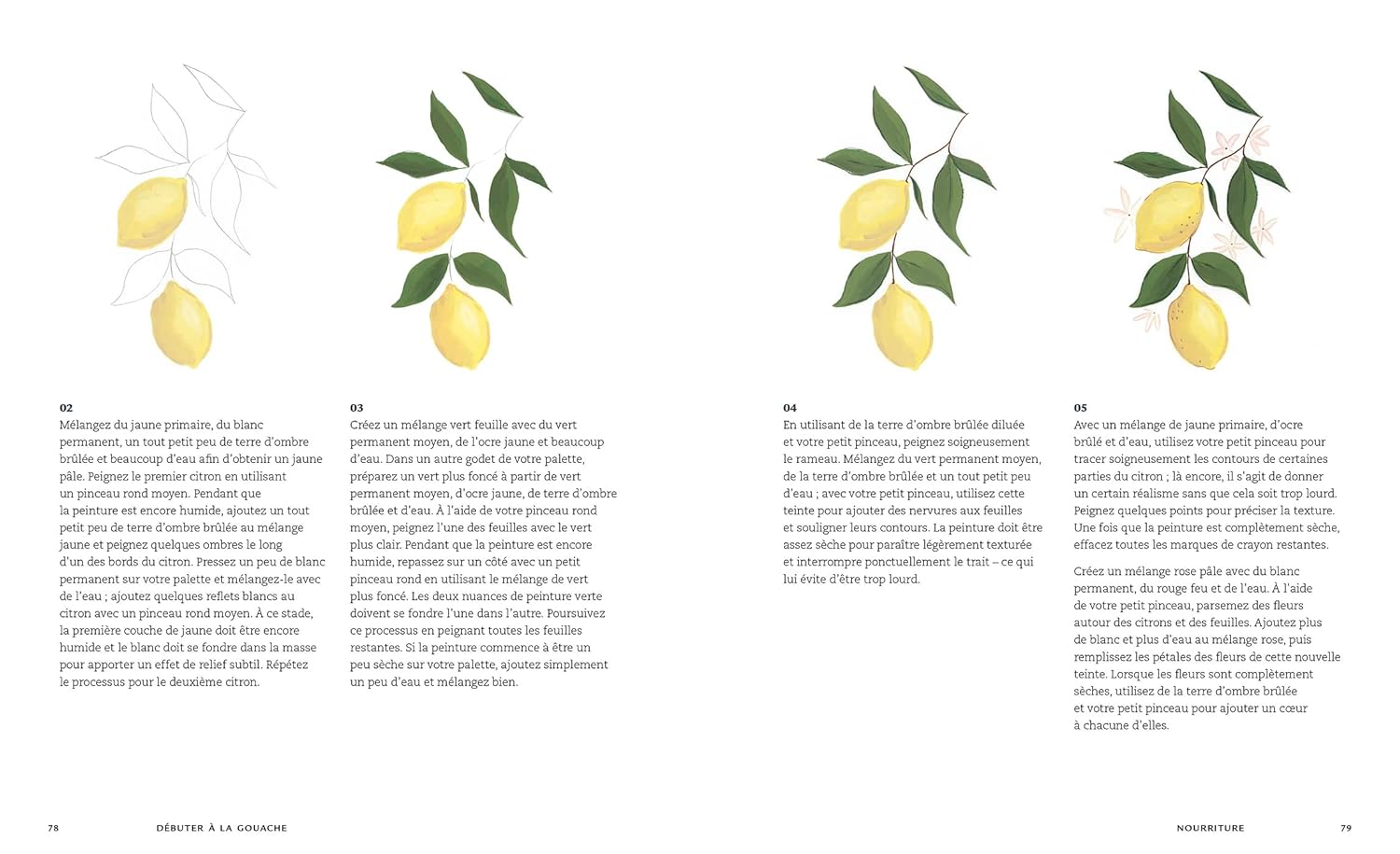Avec des explications précises, des démonstrations illustrées pas à pas et une pléthore d’exercices pratiques, chaque page tournée sera synonyme d’apprentissage et de progrès. Les techniques y sont décrites simplement et sont suivies d’exercices progressifs, de sorte que vous puissiez gagner en aisance à votre propre rythme. À vos pinceaux !