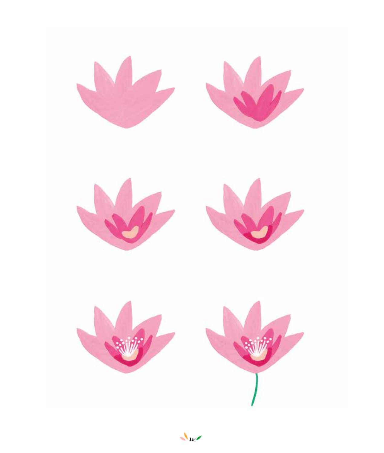 Découvrez dans de ce très joli livre 50 exercices très simples pour se familiariser avec la gouache. Pas à pas, en 6 étapes ou moins, Hannah Podbury décompose les gestes et invite à reproduire des feuilles, herbes, fleurs, coquillages et autres trésors de la nature.