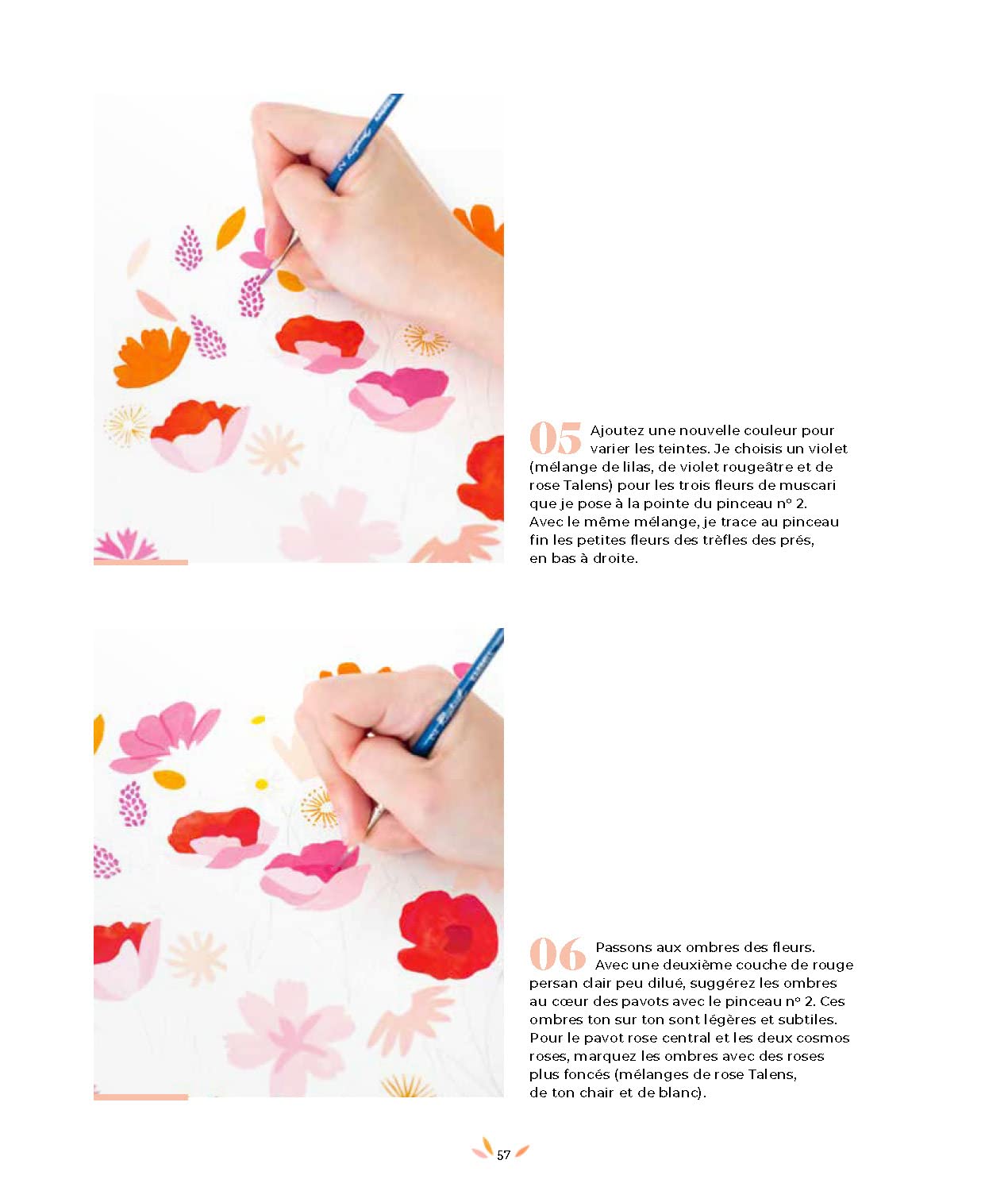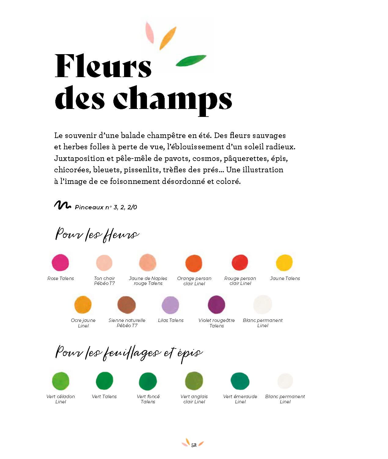 Pour maîtriser la couleur et ses accords mais aussi pour vous initier à l’art de composer une jolie image, une série de modèles sont décomposés étape par étape. Les dessins sont téléchargeables pour peindre sans hésiter.