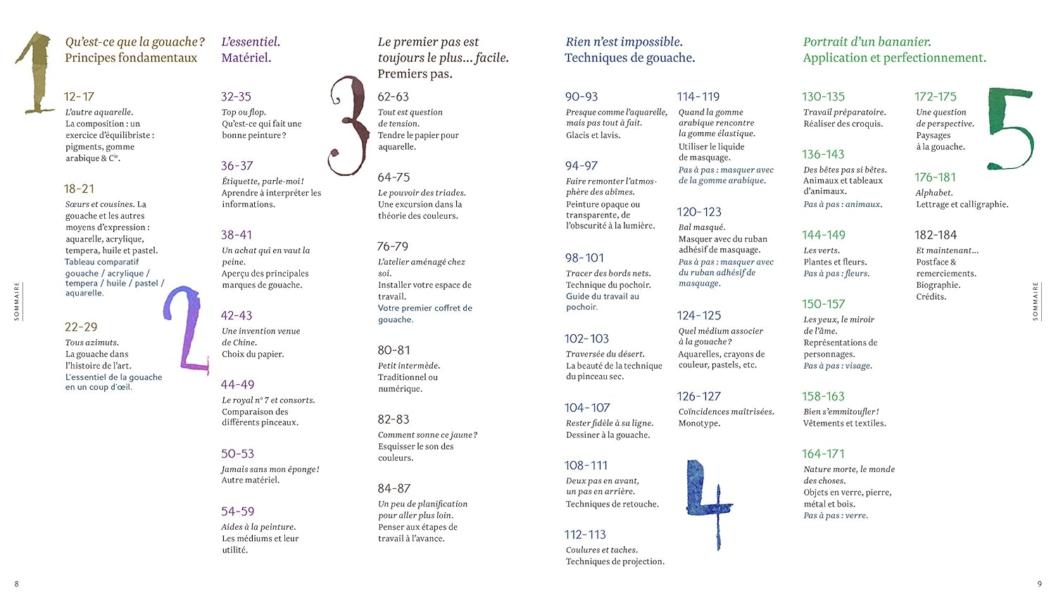 « J’ose la gouache » de Sophie Truant propose 41 défis qui vous aideront à développer votre technique, booster votre créativité et trouver votre style : choisir son matériel, entretenir une pratique régulière, constituer un carnet d’inspiration, jouer avec les contrastes et les couleurs, s’inspirer de la nature et de ce qui vous entoure, mélanger les techniques…