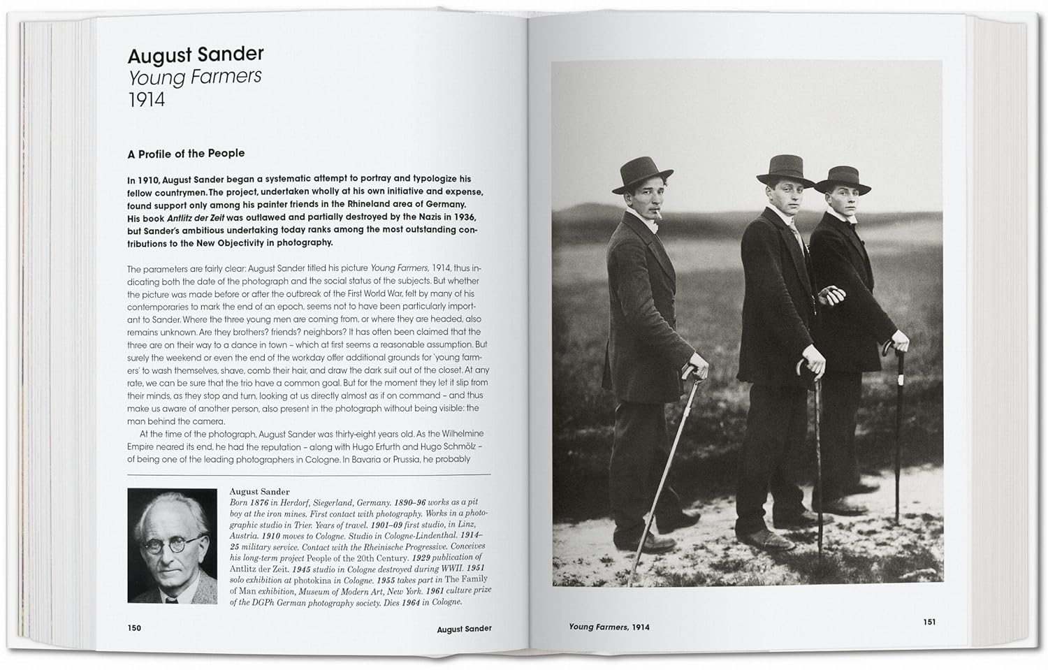 Les photographes présents dans cet ouvrage : William Henry Fox Talbot, David Octavius Hill et Robert Adamson, Gustave Le Gray, Roger Fenton, Julia Margaret Cameron, Peter Henry Emerson, Frederick H. Evans, Eugène Atget, Louis Vert, Paul Géniaux, Jacques Henri Lartigue, Wilhelm von Thoma, Alfred Stieglitz, Lewis Hine, August Sander, Doris Ulmann, Alexandre Rodtchenko, Arkadi Chaïkhet, Boris Ignatovitch, François Kollar, Margaret Bourke-White, Edward Weston, Paul Strand, Albert Renger-Patzsch, László Moholy-Nagy, Erich Salomon, André Kertész, Germaine Krull, Brassaï, Henri Cartier-Bresson, Manuel Álvarez Bravo, Josef Sudek, Bill Brandt, Lisette Model, Helen Levitt, Robert Capa, Dorothea Lange, Arthur Rothstein, Russell Lee, John Vachon, Jack Delano, Walker Evans, Ben Shahn, René-Jacques, Izis, Marcel Bovis, Robert Doisneau, Ansel Adams, Minor White, David Seymour, Louis Faurer, Robert Frank, Diane Arbus, Dorothy Bohm, Ed van der Elsken, Garry Winogrand, Lee Friedlander, Robert Adams, William Christenberry, William Eggleston, Shomei Tomatsu, Takuma Nakahira, Daido Moriyama, Lewis Baltz, Joel Meyerowitz, Stephen Shore, Anders Petersen, Joel Sternfeld, Candida Höfer, Barbara Kruger, Jeff Wall, Nan Goldin, Cindy Sherman, Axel Hütte, Thomas Struth, Andreas Gursky, Thomas Ruff, Jörg Sasse, Alec Soth, Rinko Kawauchi.