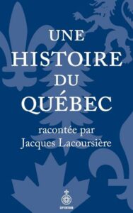 L’ouvrage est la version condensée de la monumentale Histoire populaire du Québec en cinq tomes (présentée plus loin), dont Lacoursière a extrait la substance en un récit linéaire. C’est le bouquin à recommander à qui veut comprendre la trajectoire d’ensemble du Québec en un week-end avant de se tourner vers des ouvrages plus volumineux.