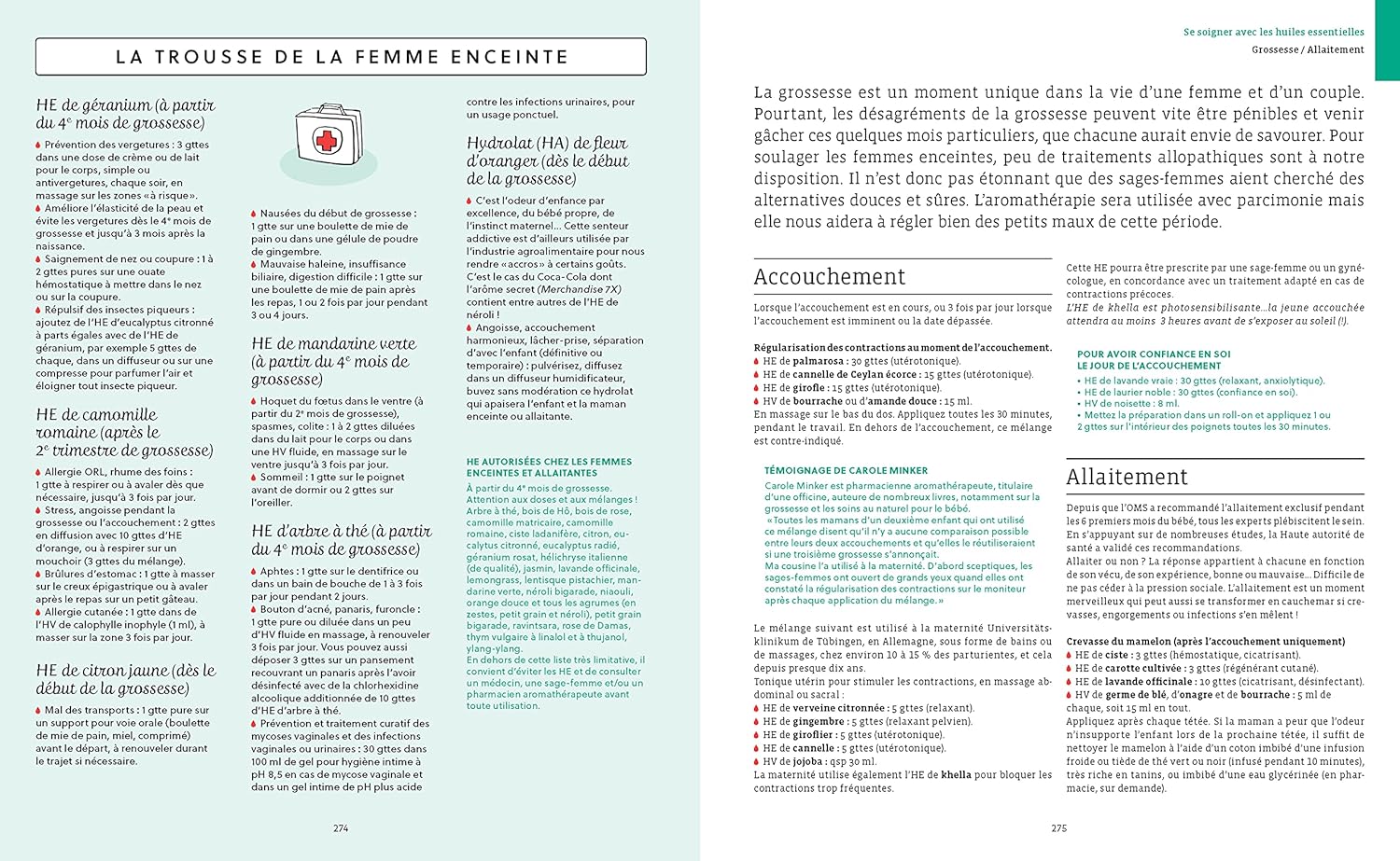 - 13 trousses pour parer aux problématiques principales : huiles essentielles indispensables, trousses d’urgence ou de voyage, trousses classées par saisons ou par thématiques (maux féminins, enfant, adolescent, coupe-faim, examens)
