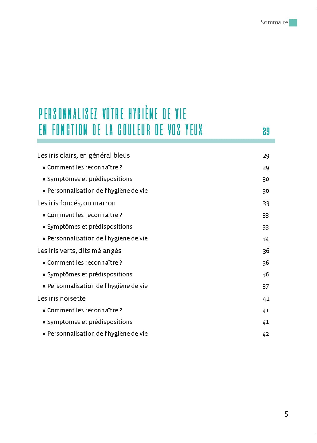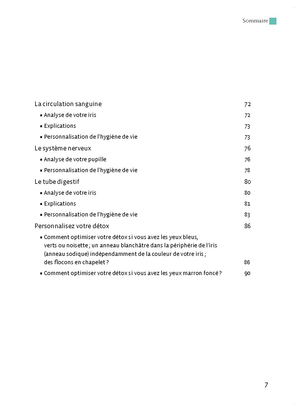 Enrichi d’un cahier couleur, ce manuel pratique montre comment relever et interpréter, de façon précise et définie, les signes et les couleurs apparaissant dans cette partie colorée des yeux. Il explicite cet excellent outil de bilan de terrain et de prévention qui apporte des informations précieuses pour conduire sa vie et sa santé de façon responsable, en s’appuyant sur des potentiels réels, parfois « invisibles pour les yeux, mais visibles dans vos iris ».