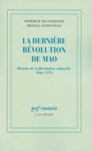 Traduction française parue chez Gallimard en 2009 (édition américaine originale Mao’s Last Revolution, Harvard University Press, 2006) du travail de deux figures majeures de la sinologie anglophone : Roderick MacFarquhar, professeur à Harvard et auteur de la trilogie fondatrice The Origins of the Cultural Revolution, et Michael Schoenhals, universitaire suédois réputé pour son aptitude à exhumer des sources primaires chinoises. Le livre couvre les dix années complètes de la Révolution culturelle, de 1966 à 1976, là où beaucoup d’études s’arrêtent aux premières années, les plus spectaculaires.