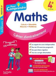 Ce cahier d’entraînement, très répandu au collège, propose une progression linéaire qui suit de près le programme de 4ᵉ. Chaque chapitre s’ouvre sur un mémo de cours concis : définitions essentielles, propriétés à connaître, exemples courts. L’élève dispose ainsi d’un résumé immédiatement exploitable avant d’attaquer les exercices.