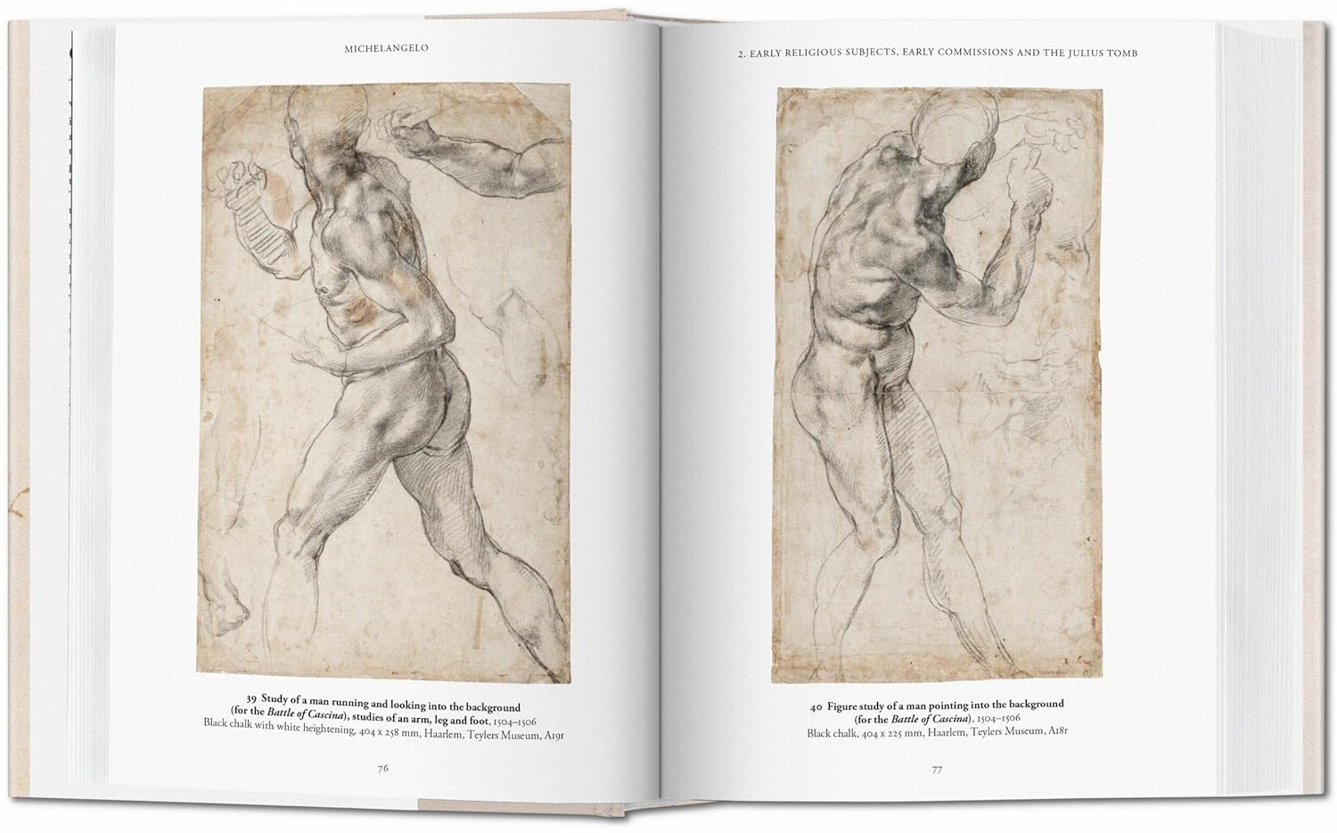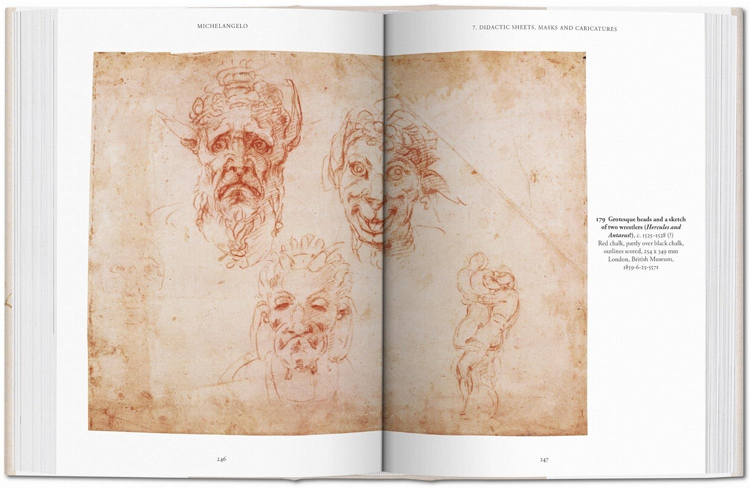 Cette nouvelle édition rend hommage à l’œuvre graphique de Michel-Ange, témoignant de sa maîtrise admirable du trait, de la forme et du détail, depuis ses structures architecturales jusqu’à ses anatomies parfaites. Le livre réunit bon nombre des dessins les plus beaux, conservés dans les musées et les collections particulières du monde entier, tout comme les notes et révisions de sa main, qui dévoilent, dans une proximité saisissante, l’ambition et l’envergure de la pratique de Michel-Ange, mais aussi les procédés par lesquels son art se manifeste.