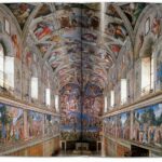 Au fil des lieux de pouvoir de la Renaissance italienne sont rappelées ses plus grandes commandes artistiques, ainsi que sa capacité phénoménale à imaginer des compositions, qu’il s’agisse de la fameuse bibliothèque des Médicis à Florence ou de la sublime voûte de la chapelle Sixtine (1508-1512), d’une superficie de 500 mètres carré.