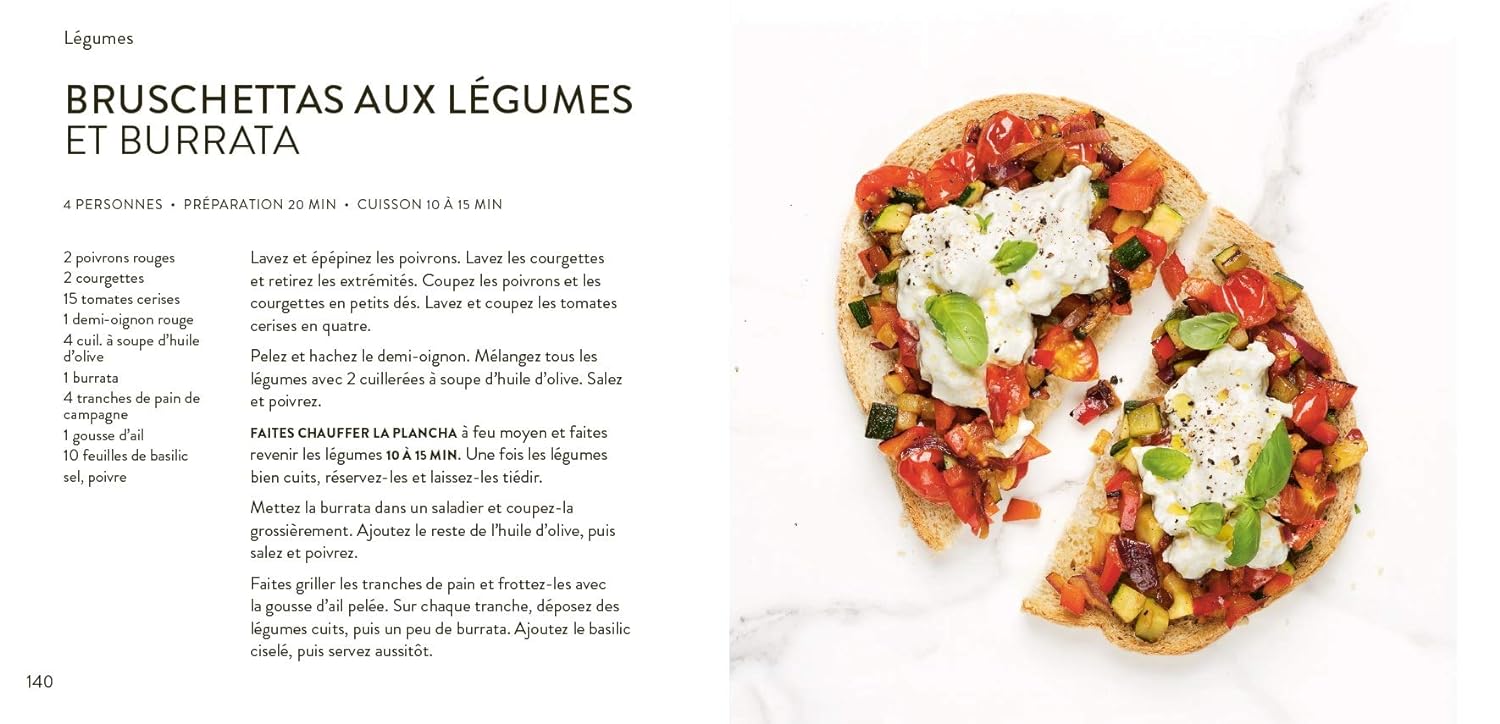Des recettes conviviales et hautes en couleur nous attendent dans ce livre dédié à la cuisine à la plancha. De l’apéritif au dessert, on y apprend à maîtriser cet appareil de cuisson polyvalent.
