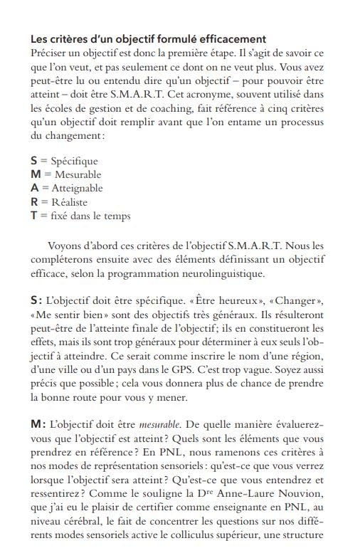 Les outils de cette méthode sont variés : visualisation, rêve éveillé, hypnose, « gym-cerveau », travail sensoriel et linguistique. Conçu comme un stage d’une durée de trois jours, ce livre permettra au lecteur d’appréhender de manière ludique et pratique les secrets de la PNL.