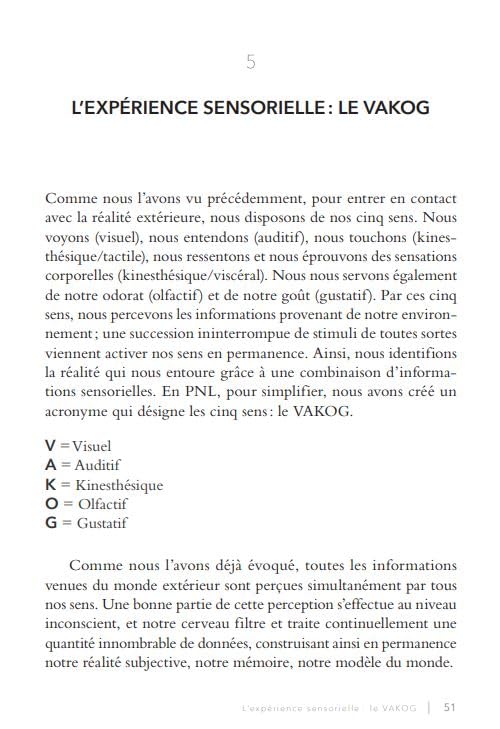 La programmation neurolinguistique, technique de communication reconnue dans le monde entier, propose des outils simples et puissants pour transformer sa vie et atteindre ses objectifs personnels et professionnels. Son approche repose sur l’observation de ceux qui réussissent pour s’en inspirer, ainsi que sur les acquis scientifiques modernes de la linguistique et de la neurologie.
