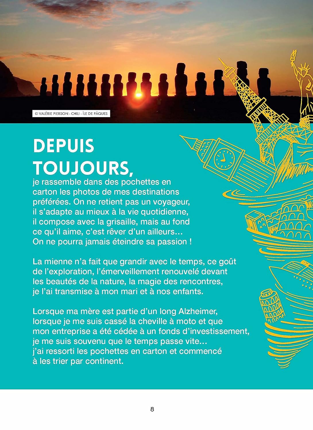 Cet ouvrage suit une trentaine d’itinéraires : hommes et femmes qui ont su partir… et revenir. En famille, entre amis, en solo ou en couple, leurs motivations étaient variées : visiter les plus grandes stations de ski du monde, rencontrer les populations opprimées de Chine, oublier une longue maladie, faire découvrir le cinéma aux enfants africains, se retrouver en famille…