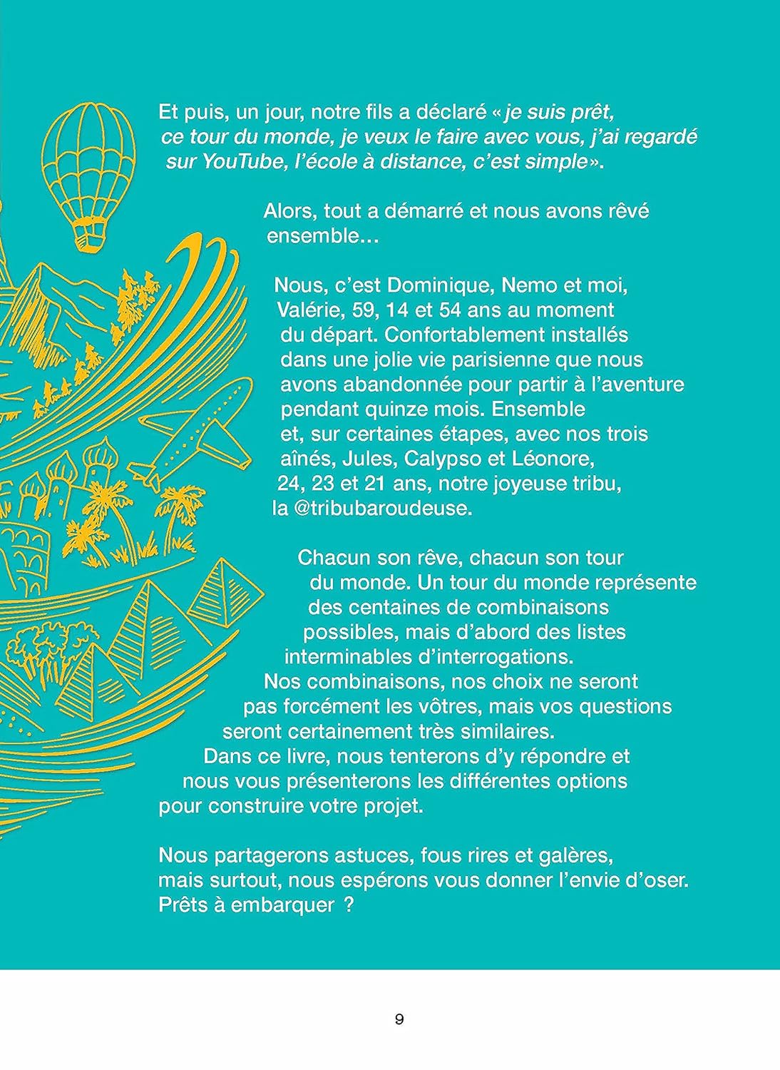 Chacun son rêve, chacun son tour du monde. Un tour du monde, c’est des centaines de combinaisons possibles. Mais, un tour du monde, c’est d’abord des listes interminables d’interrogations. Nos combinaisons, nos choix ne seront pas forcément les vôtres mais vos questions seront certainement très similaires. Dans ce livre, nous tenterons d’y répondre et nous vous présenterons les différentes options pour construire votre projet. Nous partagerons astuces, fou rires et galères mais surtout, nous espérons vous donner l’envie d’oser. Prêts à embarquer ?