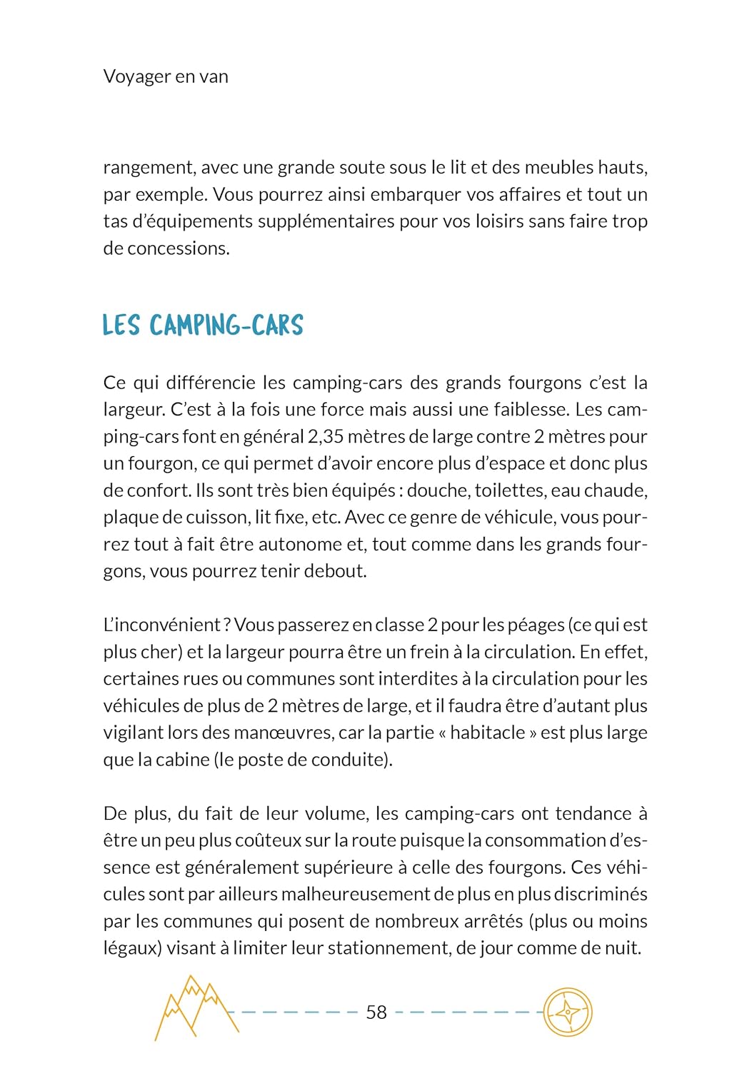 Choisissez le véhicule adapté à vos besoins en prenant connaissance des différentes solutions d’aménagement qui existent, préparez votre voyage avant le grand départ (véhicule et équipage) et faites face aux imprévus. Une fois sur les routes, vivez au mieux le quotidien en van, en famille ou en solo (trouvez facilement un endroit où dormir, gérez chaque jour votre autonomie en eau, électricité, gaz, etc.).