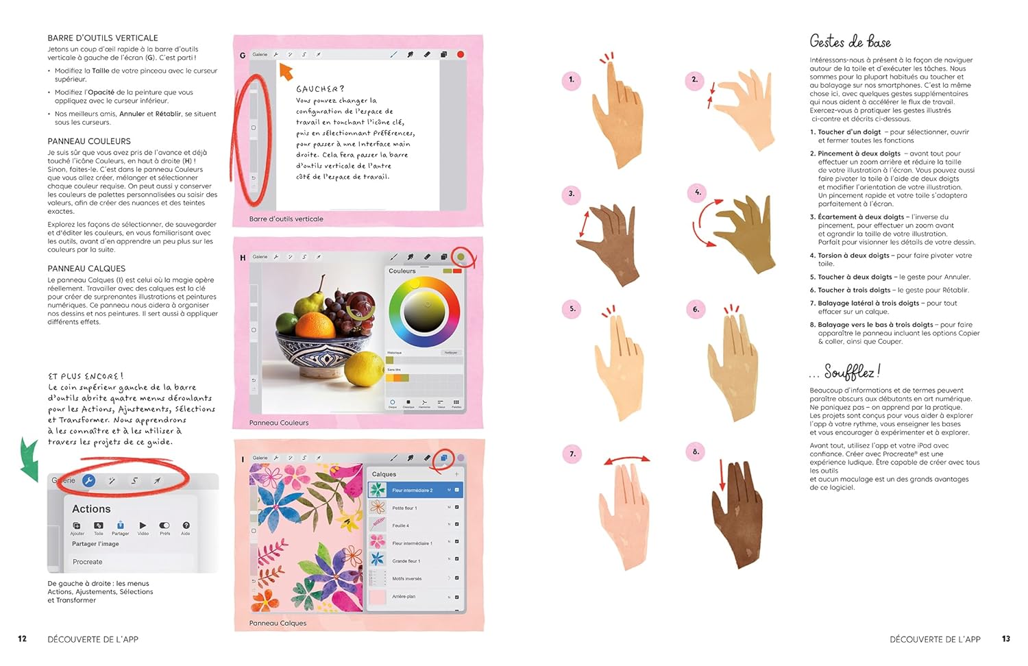 • L’interface de Procreate, les menus et les gestes les plus utilisés.