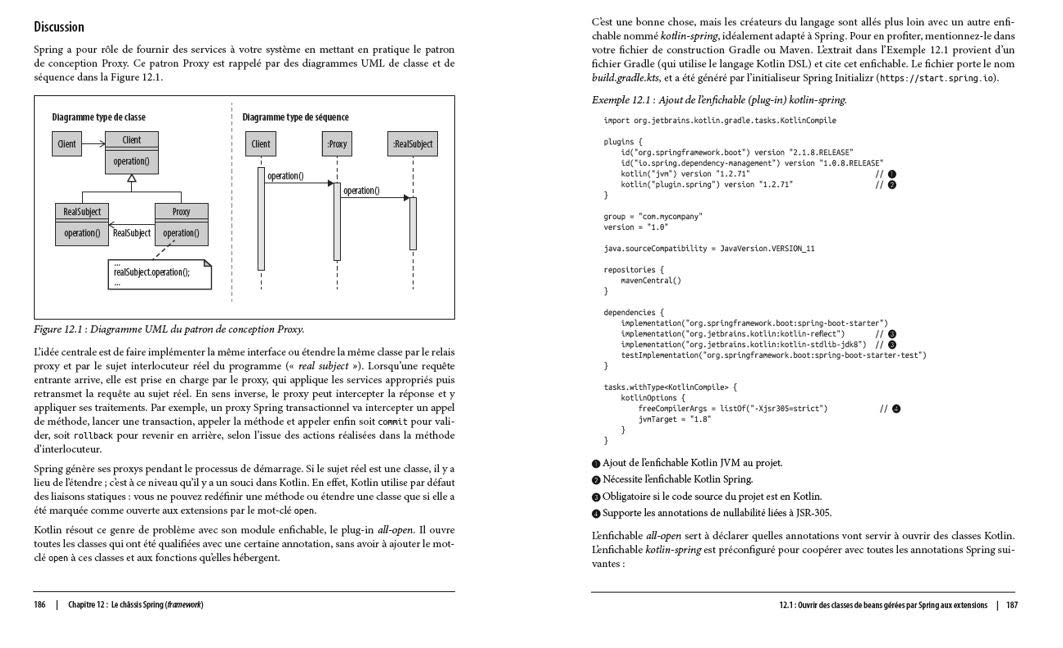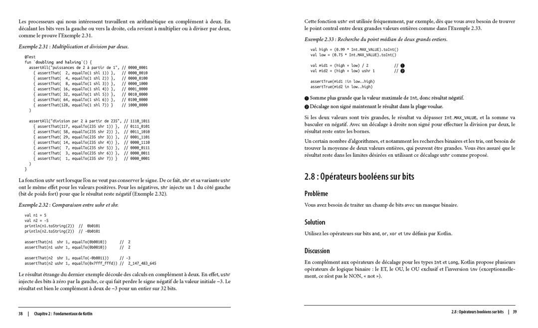 Les quatre premiers chapitres traitent des fondamentaux du développement mobile, des fondamentaux du langage Kotlin et de la programmation orientée objet. Chaque concept décrit par l’auteur est accompagné d’une explication simple, de la syntaxe ainsi que d’un exemple d’utilisation.