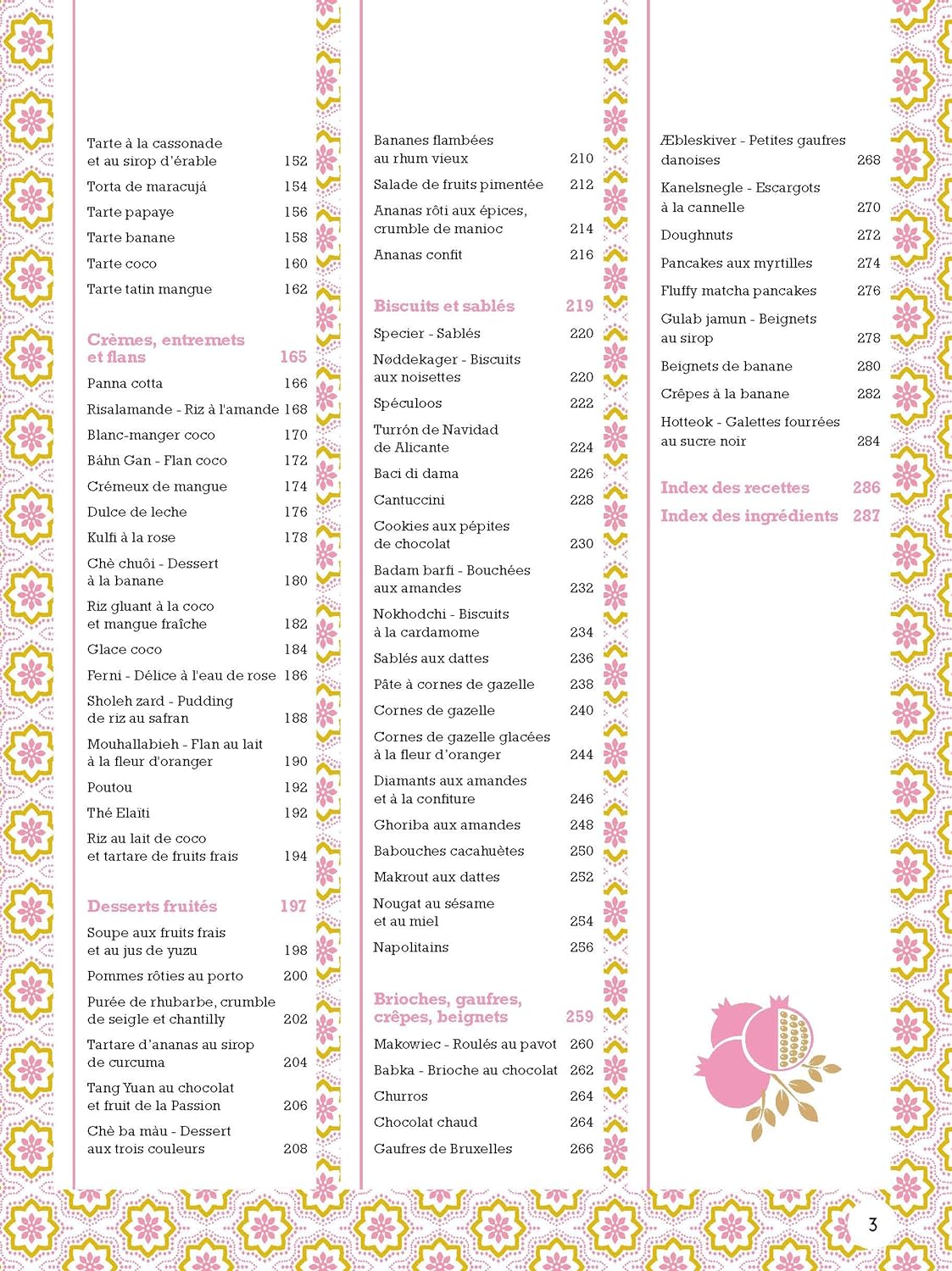 Au menu, un éventail de douceurs aussi variées qu’irrésistibles : gâteaux individuels ou à partager (brownie américain, gâteau de semoule libanais…), tartes et tartelettes gourmandes, crèmes veloutées (crème catalane, kulfi indien…), entremets raffinés, biscuits croquants, brioches moelleuses, sans oublier les crêpes (pancakes, blinis russes…) et autres spécialités locales (churros espagnols, lokma turcs…).