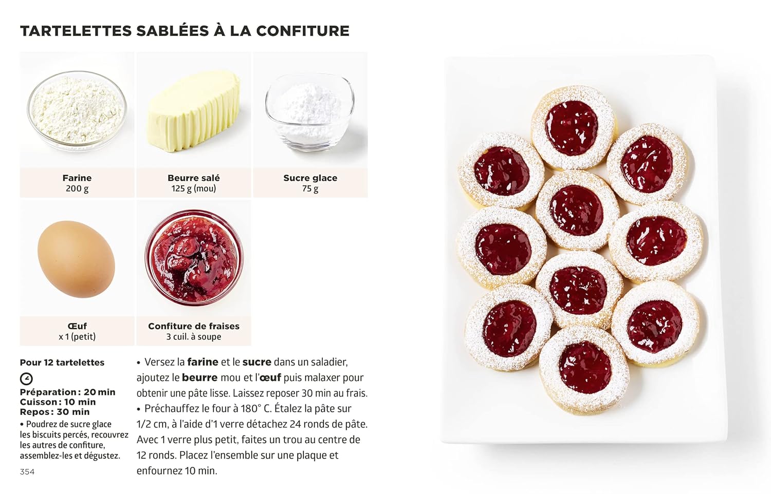 Pas besoin d’être un pro de la pâtisserie pour se lancer. Jean-François livre ici des recettes de desserts ultra simples : chacune ne nécessite que 3 à 6 ingrédients et se résume en 5 ou 6 lignes. Quelques ustensiles de base suffisent (fouet électrique, moules à tarte…).
