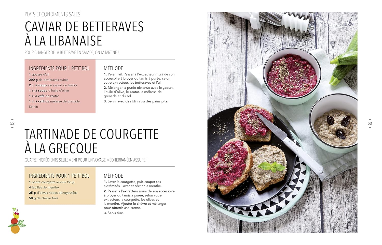 L’auteure nous montre comment améliorer notre alimentation au quotidien. On apprend à maximiser notre apport en vitamines et nutriments. Le livre va plus loin en proposant des idées pour utiliser la pulpe. Houmous, tzatziki : des recettes qui donnent envie de se mettre aux fourneaux !