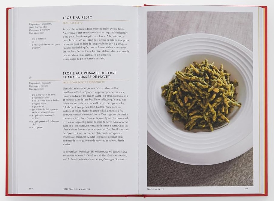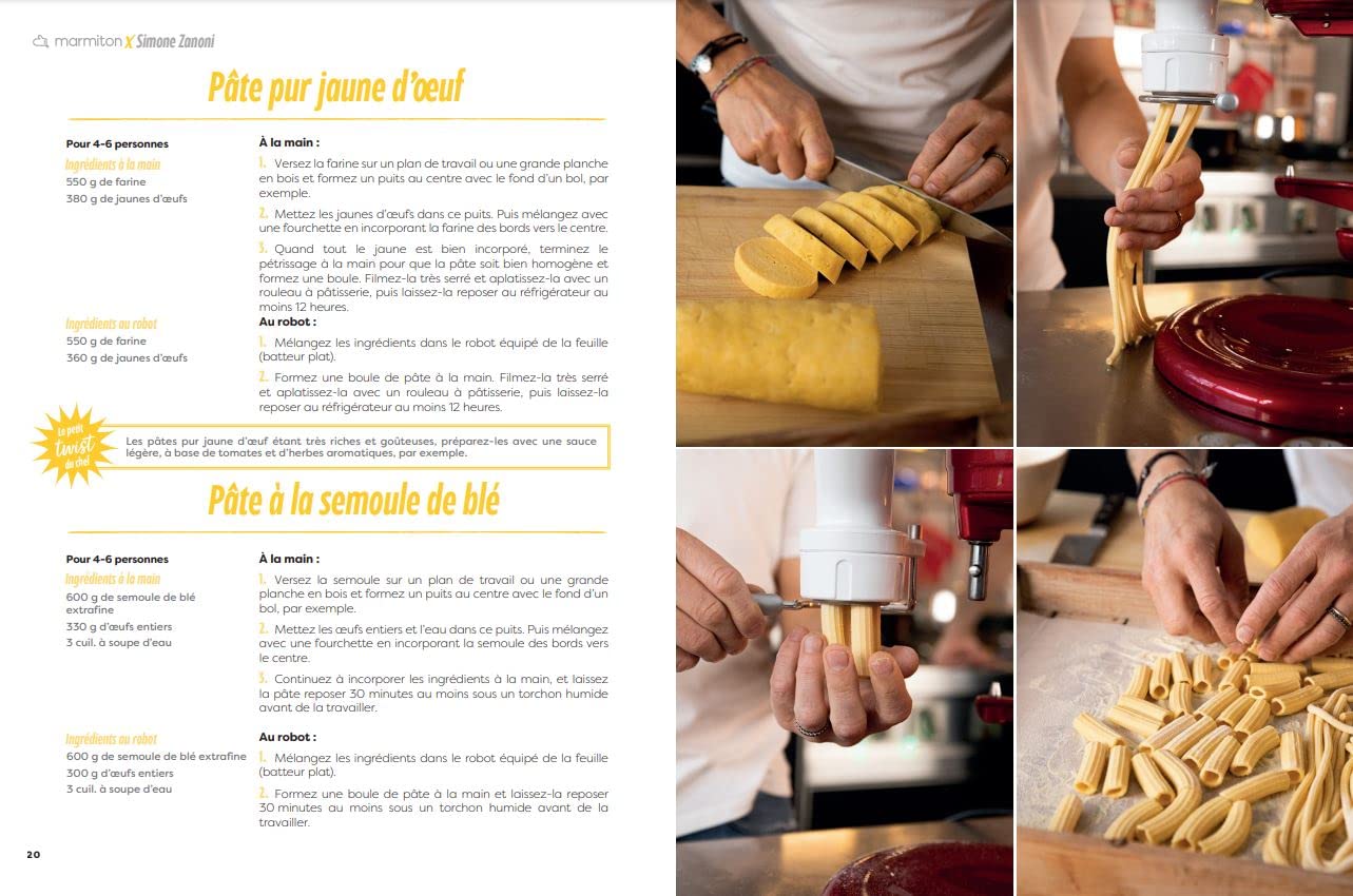 Simone Zanoni dévoile également tous ses secrets pour des pâtes fraîches maison réussies (à la main ou au robot) et une cuisson impeccable. Pâtes longues, courtes, tripoline, papillons, spaghetti, penne, orecchiette, tortelli, agnolotti, cappelletti, tagliolini… Toutes les formes sont à l’honneur !