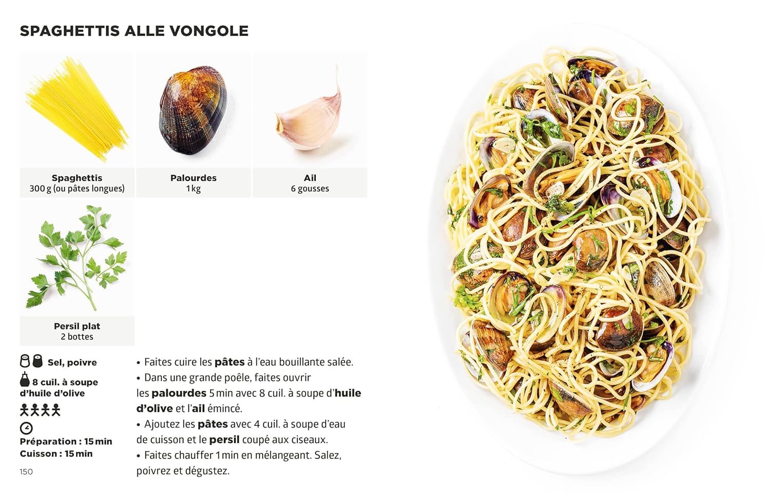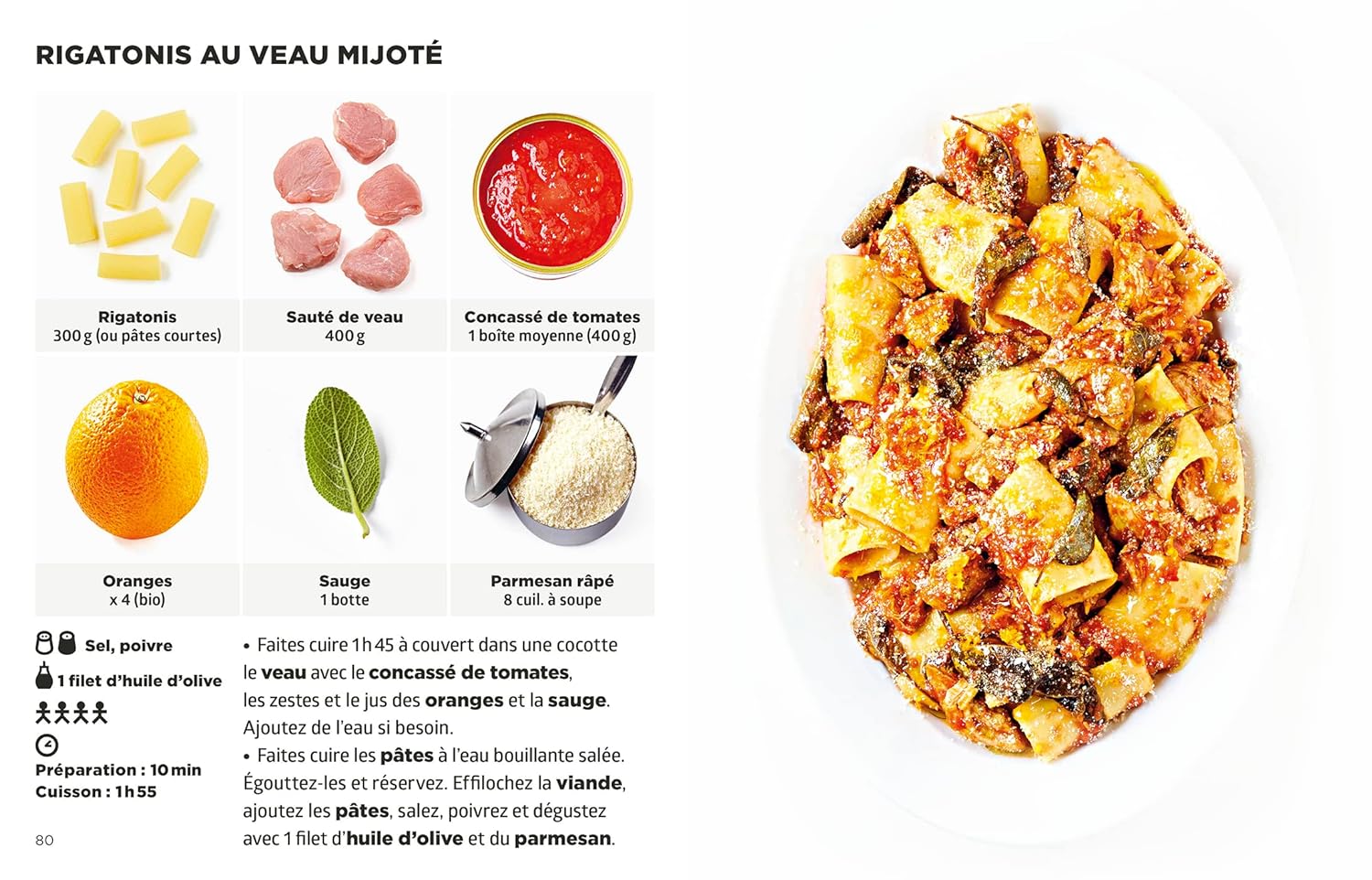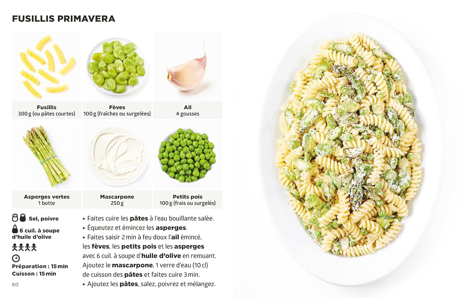 Au menu : 50 recettes faciles à réaliser, même quand le temps vous manque. Gnocchis, linguines, spaghettis… Il y en a pour tous les goûts ! Les auteurs ont concocté des recettes bien calibrées pour une alimentation équilibrée.