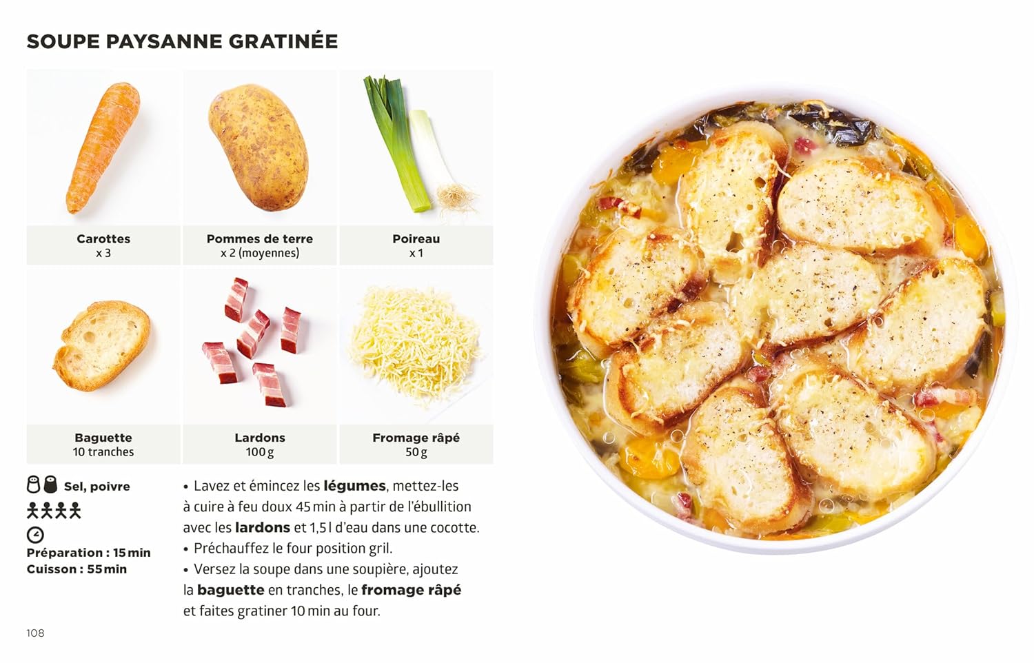 On redécouvre l’art de la soupe avec ce recueil de 100 recettes inventives. Les auteurs jouent habilement avec les textures et les saveurs. On savoure un velouté de poireau rehaussé de parmesan, puis on ose la fraîcheur du duo petit pois-menthe.