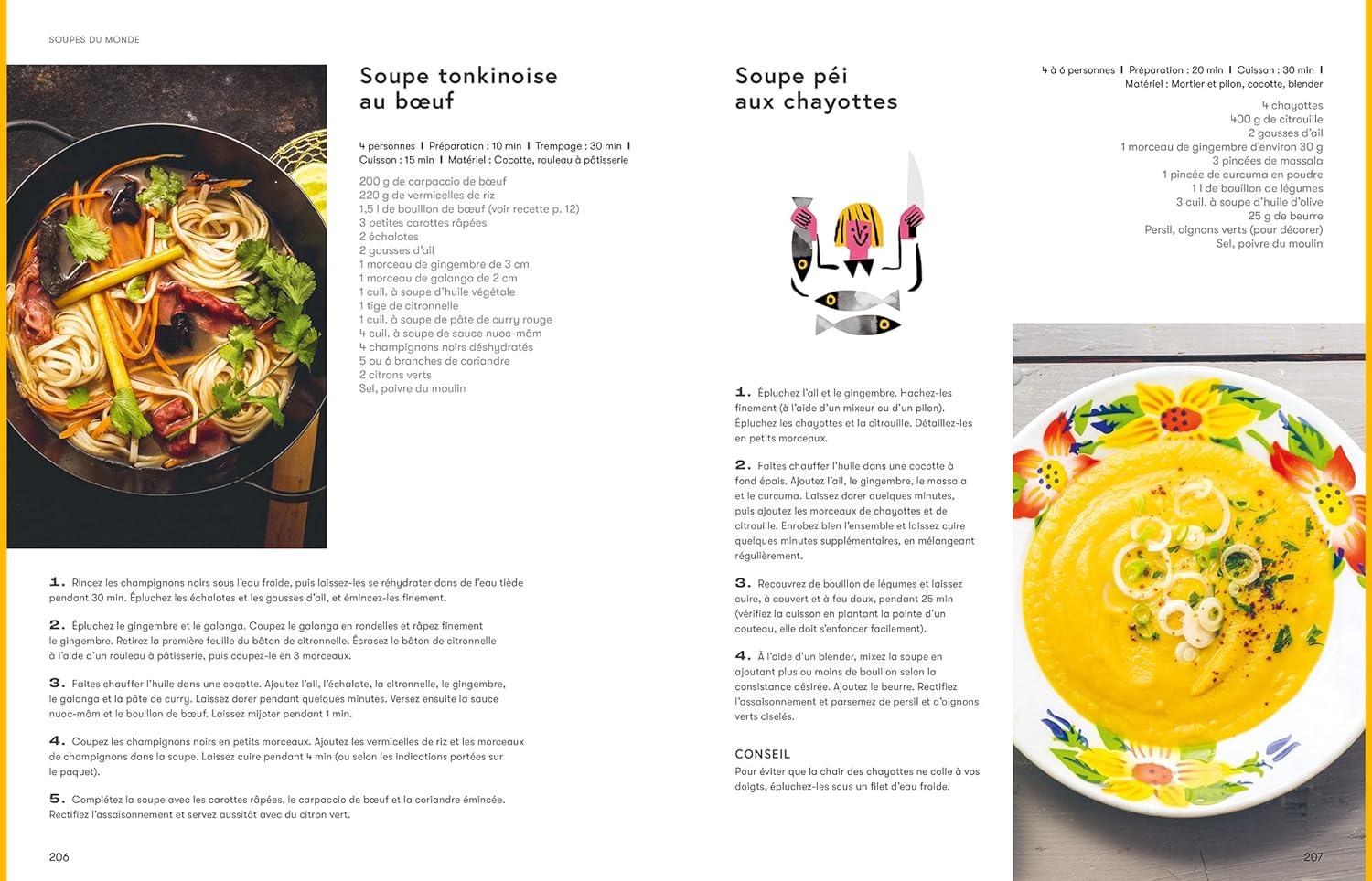 L’ouvrage nous emmène dans un tour du monde culinaire. Du minestrone (soupe italienne) au bouillon asiatique, chaque recette est une invitation au voyage. En prime, les recettes sont simples à réaliser ! Et on se régale !
