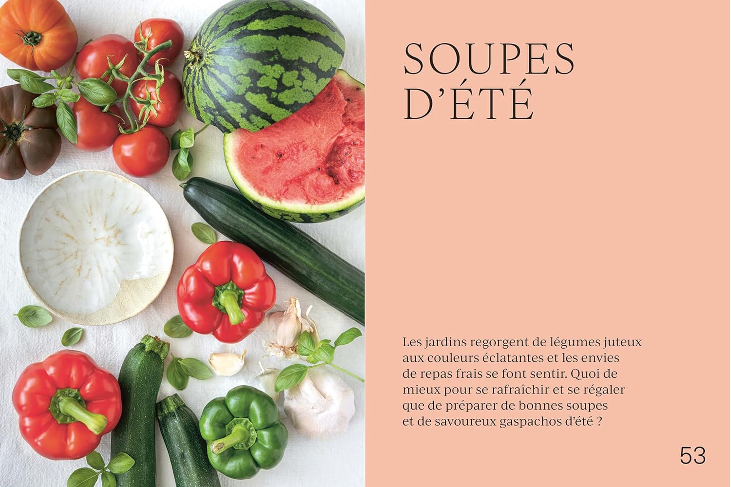 Du velouté hivernal au gaspacho estival, en passant par des créations originales comme la soupe glacée d’avocat au saumon fumé, le livre regorge d’idées savoureuses. Les ingrédients s’assemblent avec harmonie : potiron et coco, fraises et tomates, lentilles et chorizo…
