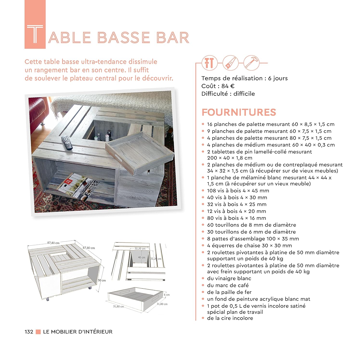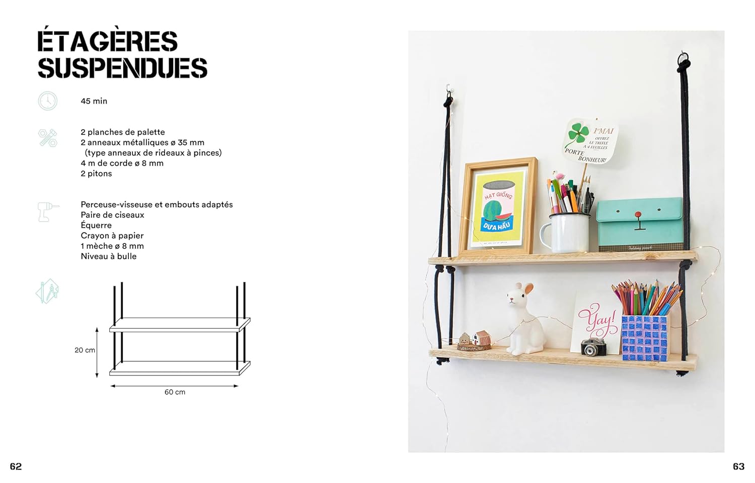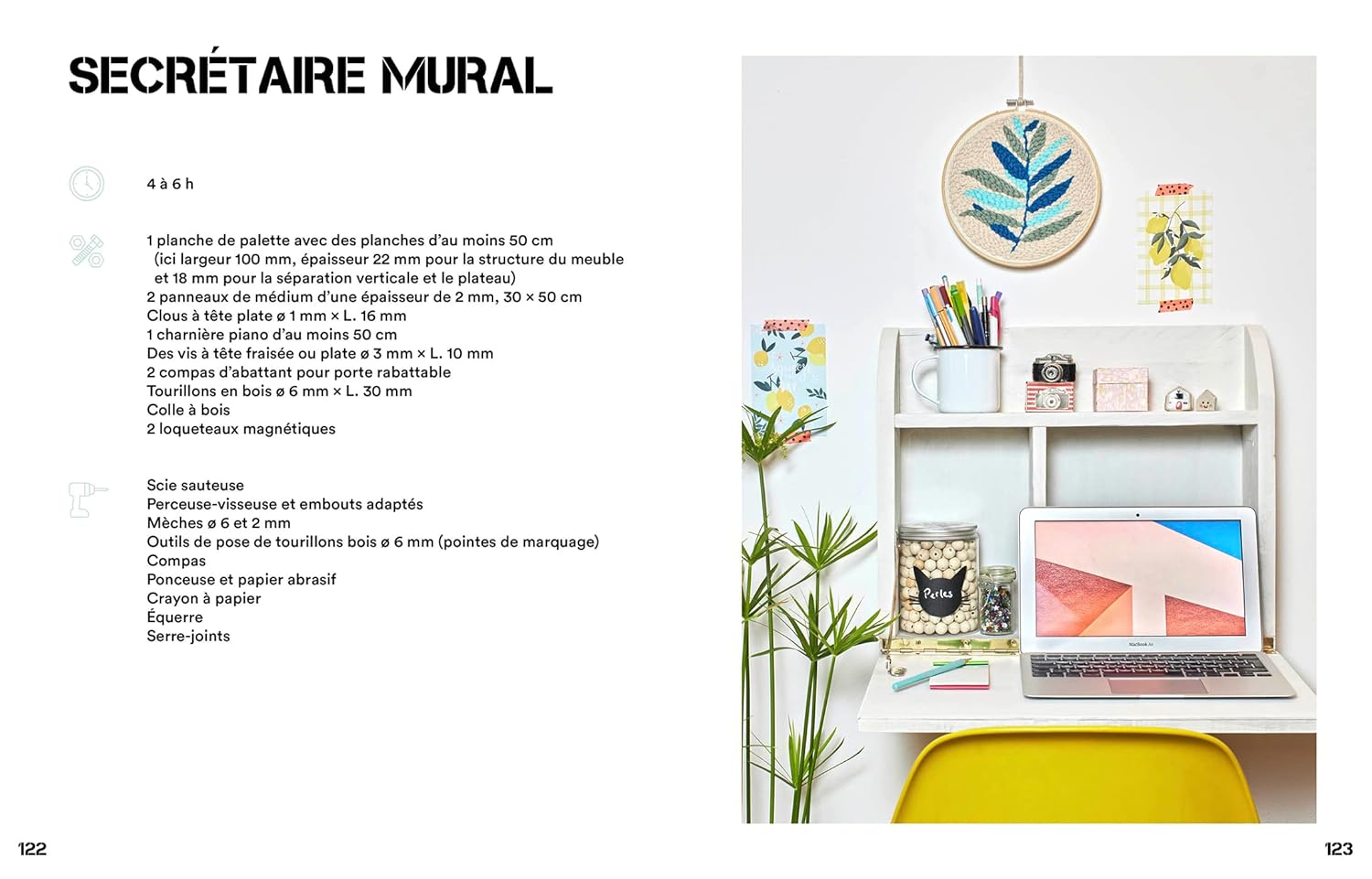 Créez des meubles, fabriquez des tableaux ou bricolez de pots de fleurs… Nul besoin d’être un professionnel : guides d’assemblage, instructions pas à pas et conseils de montage vous accompagnent tout au long de vos créations. Un chapitre est également dédié aux outils et techniques nécessaires pour se lancer dans l’aventure.