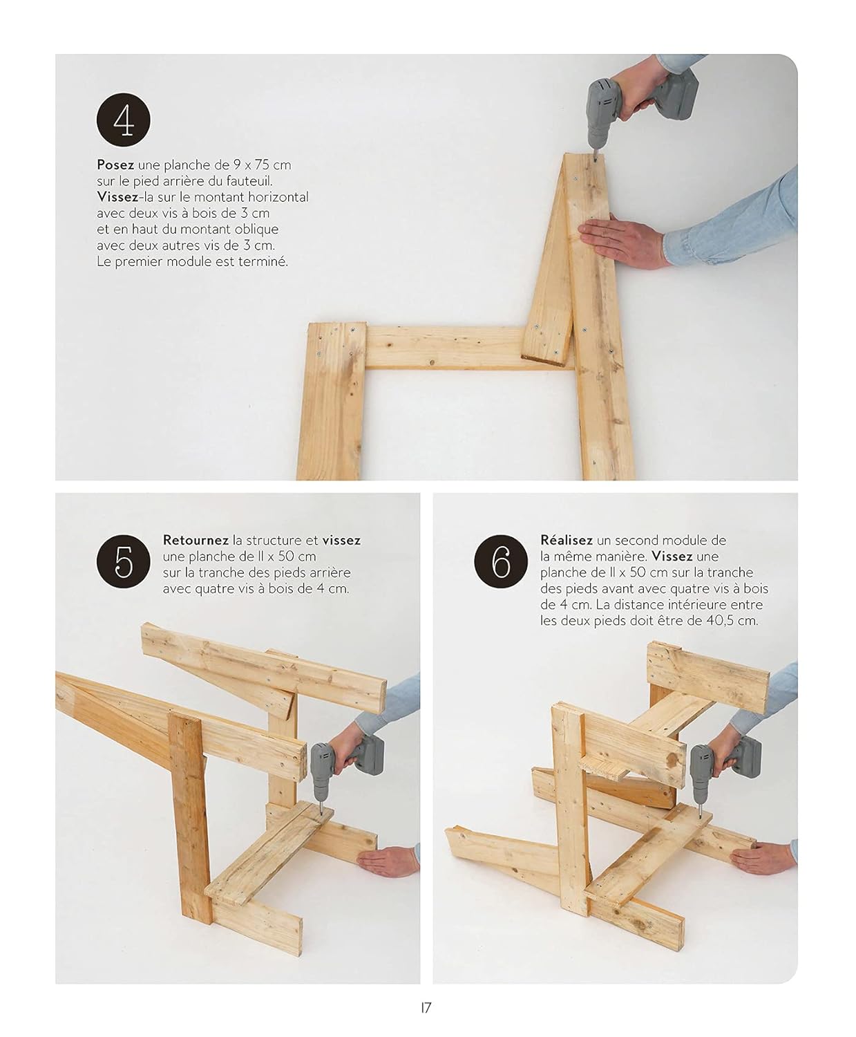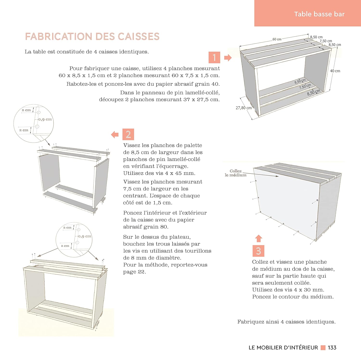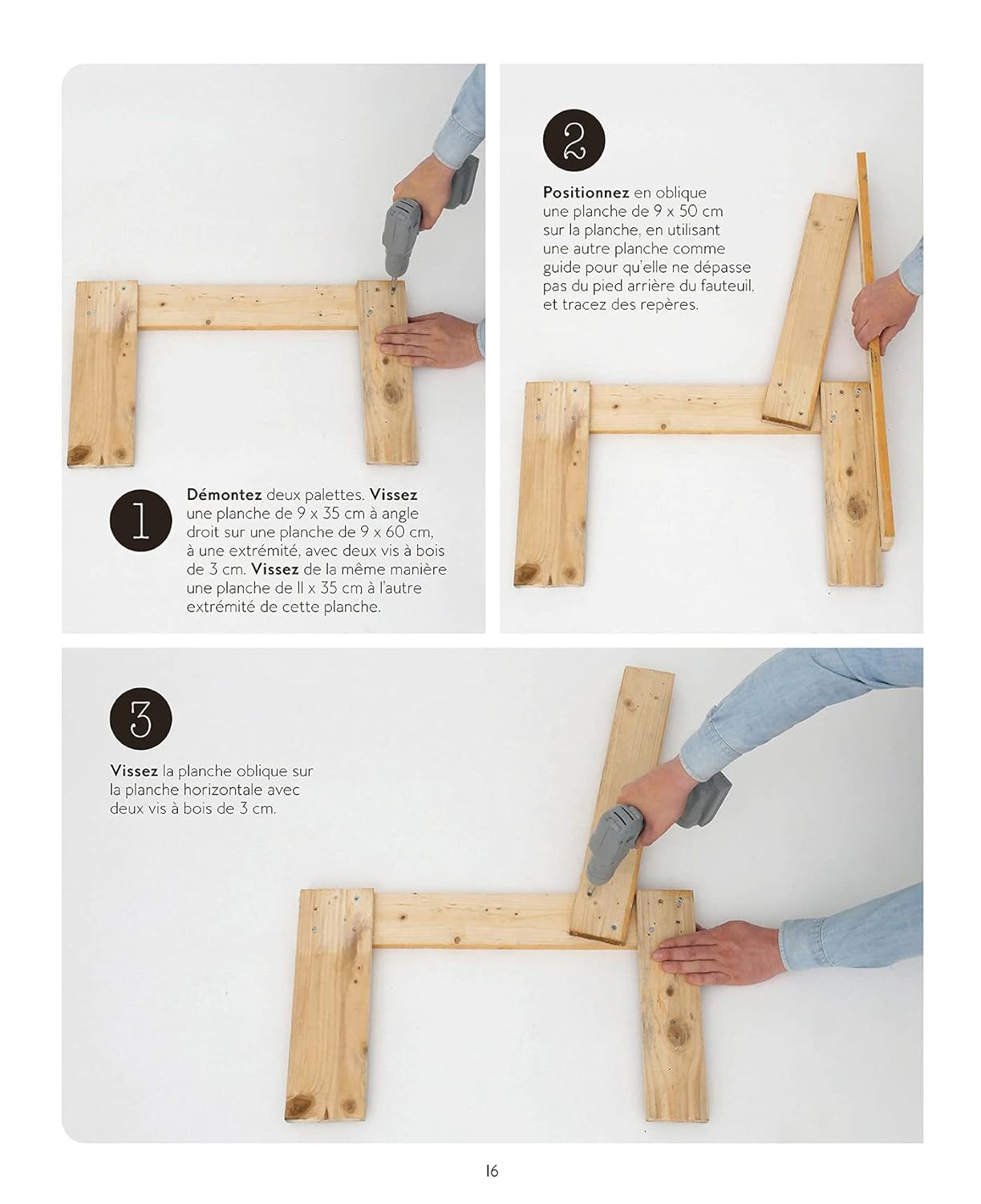 Créez des meubles, fabriquez des tableaux ou bricolez de pots de fleurs… Nul besoin d’être un professionnel : guides d’assemblage, instructions pas à pas et conseils de montage vous accompagnent tout au long de vos créations. Un chapitre est également dédié aux outils et techniques nécessaires pour se lancer dans l’aventure.