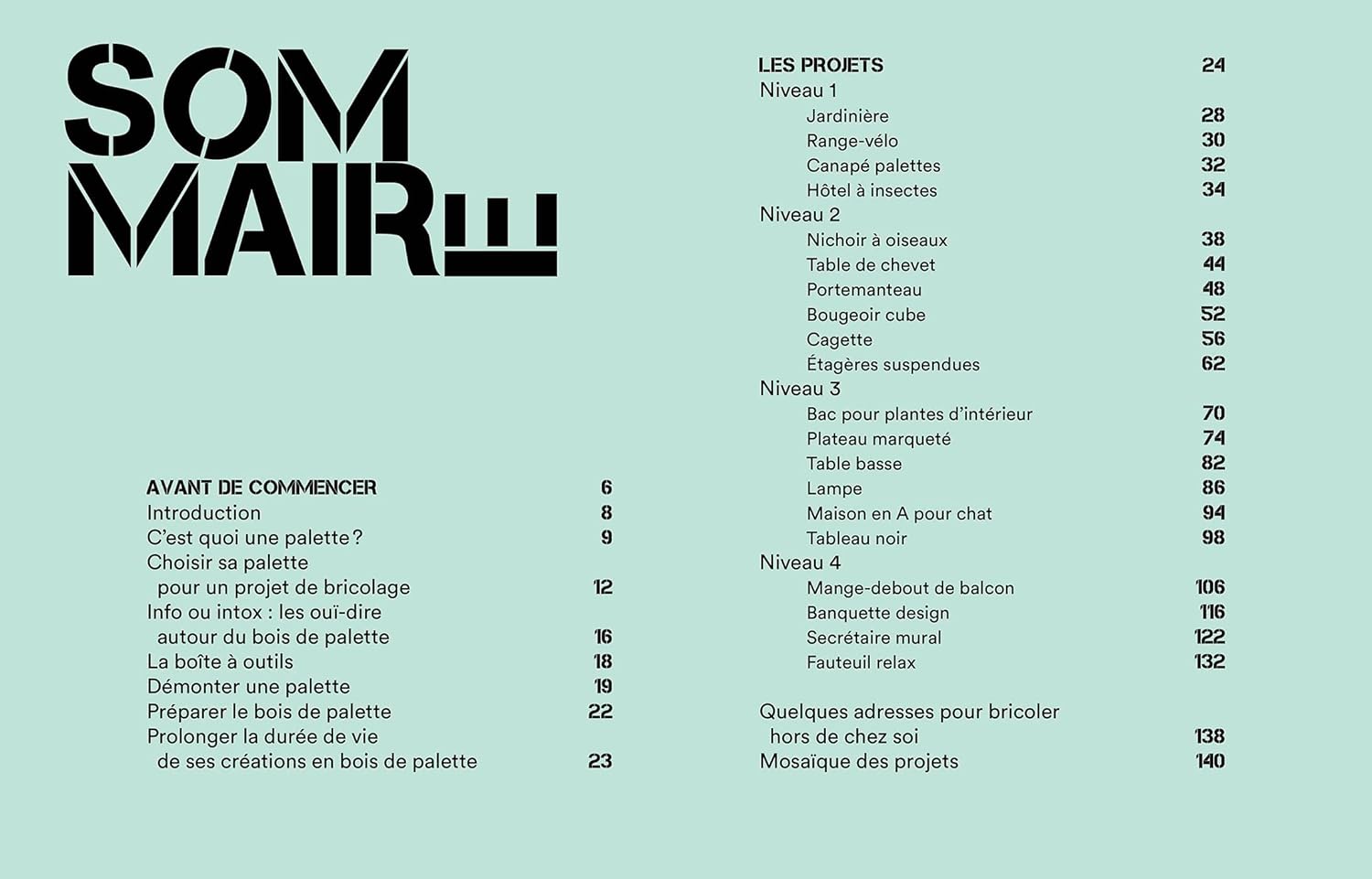 De créations rapides et faciles comme un nichoir à oiseaux et une horloge murale à des projets plus complexes comme une mini serre de jardin et un îlot de cuisine, il y en a pour tous les goûts et toutes les palettes. Vous aurez aussi toutes les notions indispensables, notamment les outils de base, les options de finition et les informations clés sur la sécurité.