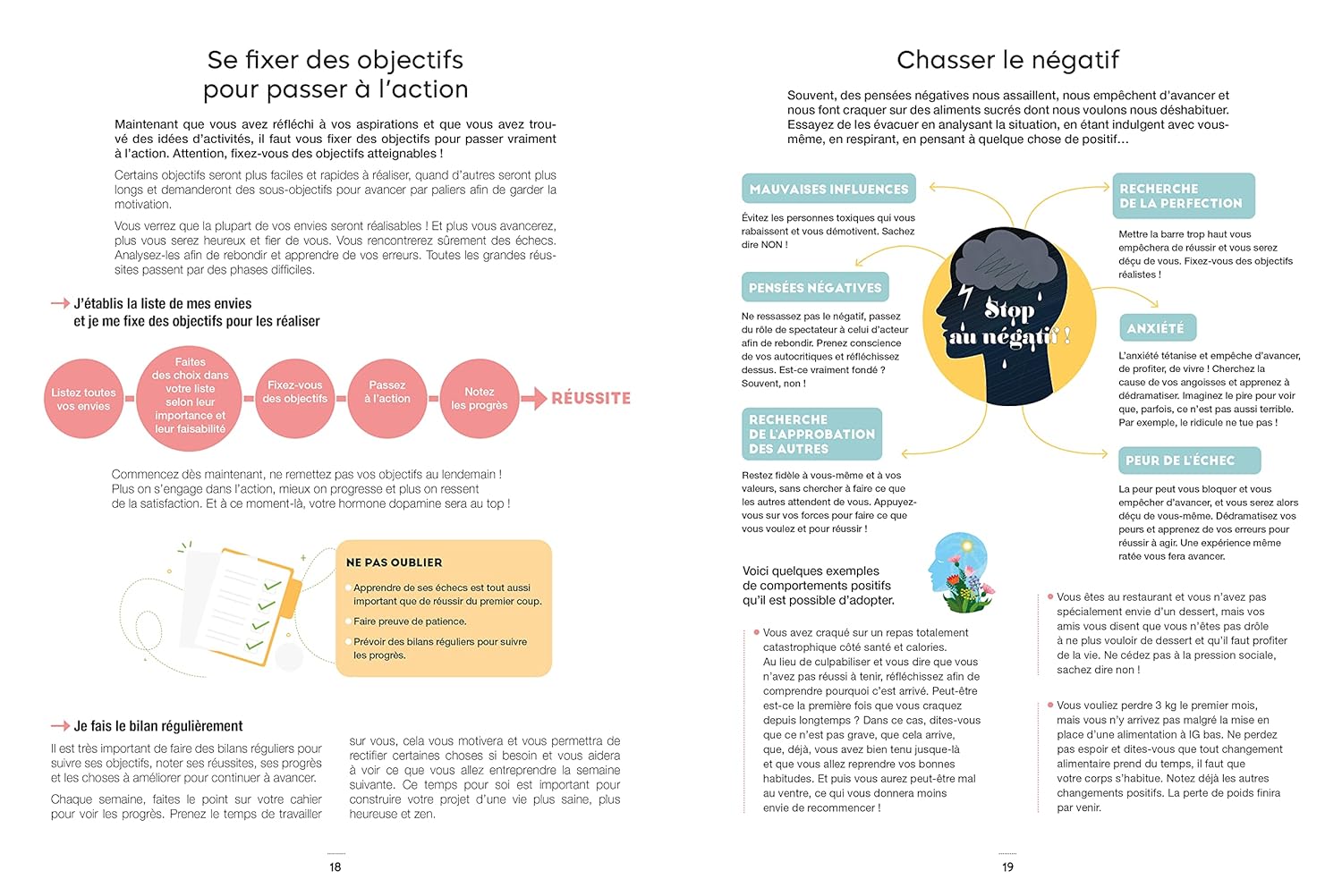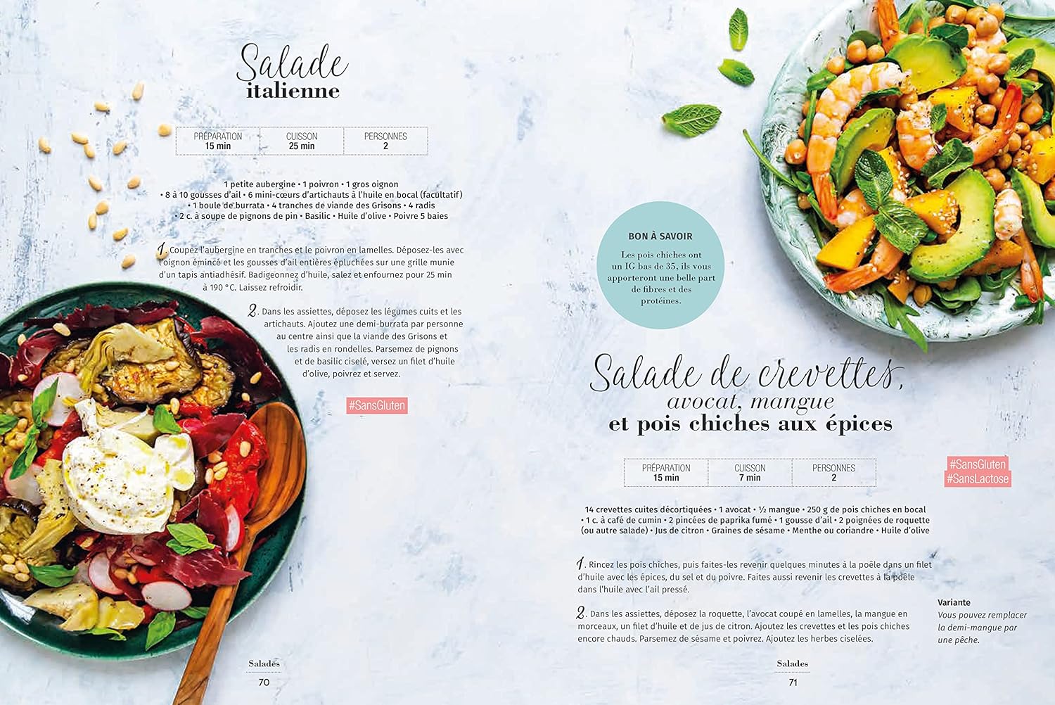 Ce livre est aussi un recueil de 70 recettes adaptées à tous les moments de la journée. Des pancakes pour un petit-déjeuner énergisant, un buddha bowl aux crevettes pour un déjeuner équilibré, un roulé de poulet aux tomates et basilic pour un dîner réconfortant… Sans oublier mousse de framboises ou tarte aux légumes pour se faire plaisir.