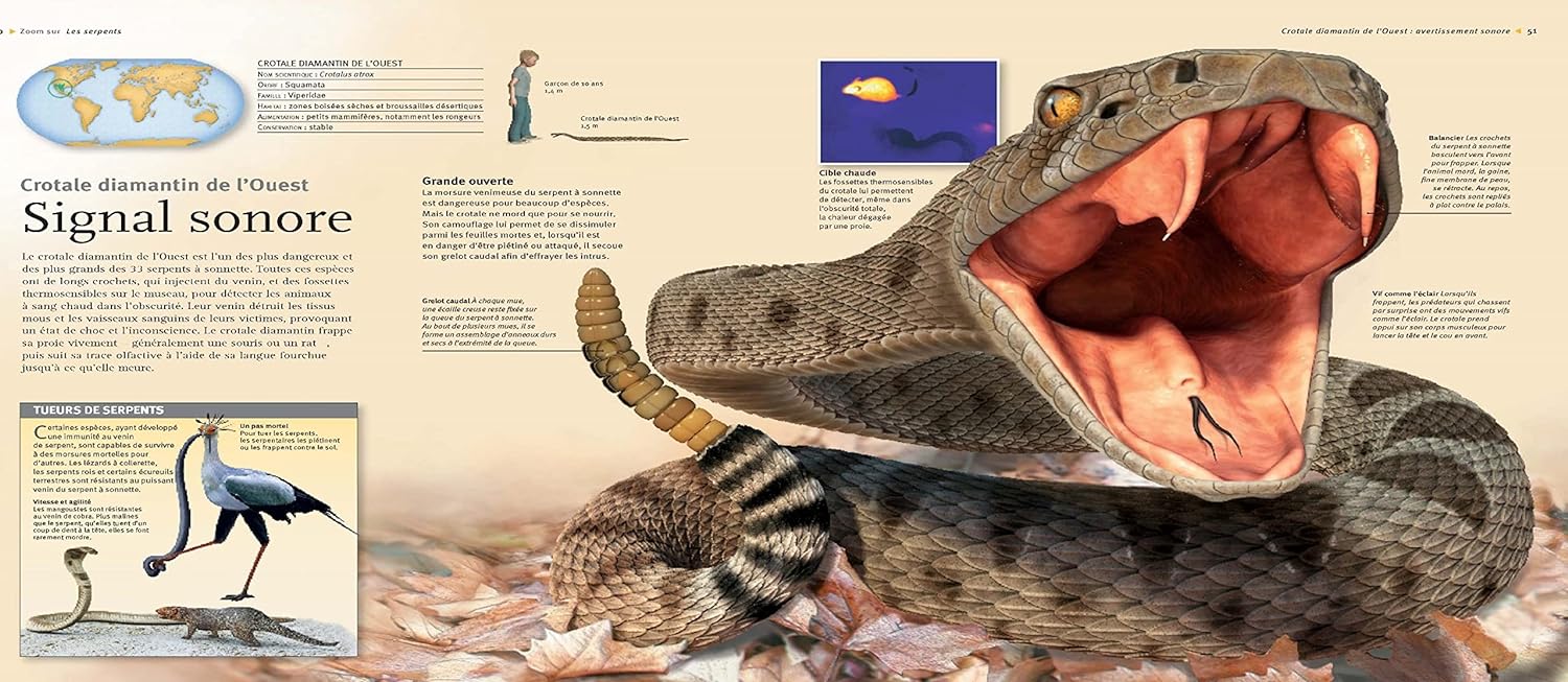 Cet ouvrage enchantera tous les enfants passionnés par le monde des reptiles. D’incroyables images et des informations rédigées par de grands experts permettront aux jeunes lecteurs de plonger dans l’univers des reptiles et de percer tous leurs secrets.