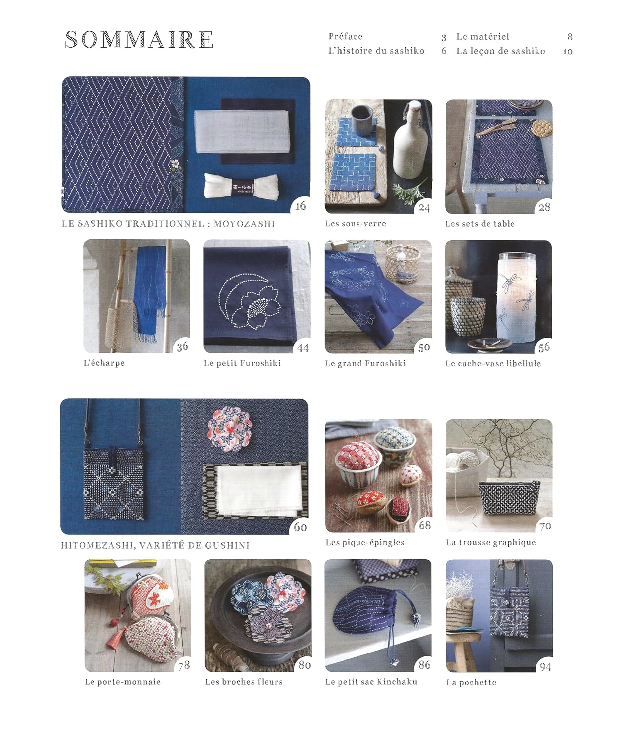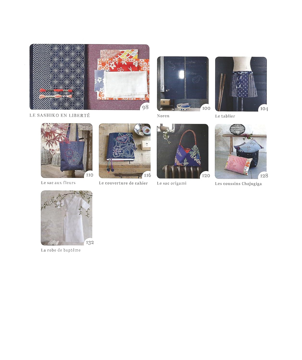 Un livre complet qui aborde la technique de sashiko et propose un répertoire de près de 90 motifs traditionnels mais également figuratifs, comme les fleurs et les animaux, ainsi que 19 créations à réaliser pour tous niveaux : sacs, pochettes, écharpes, coussins, objets de décoration…