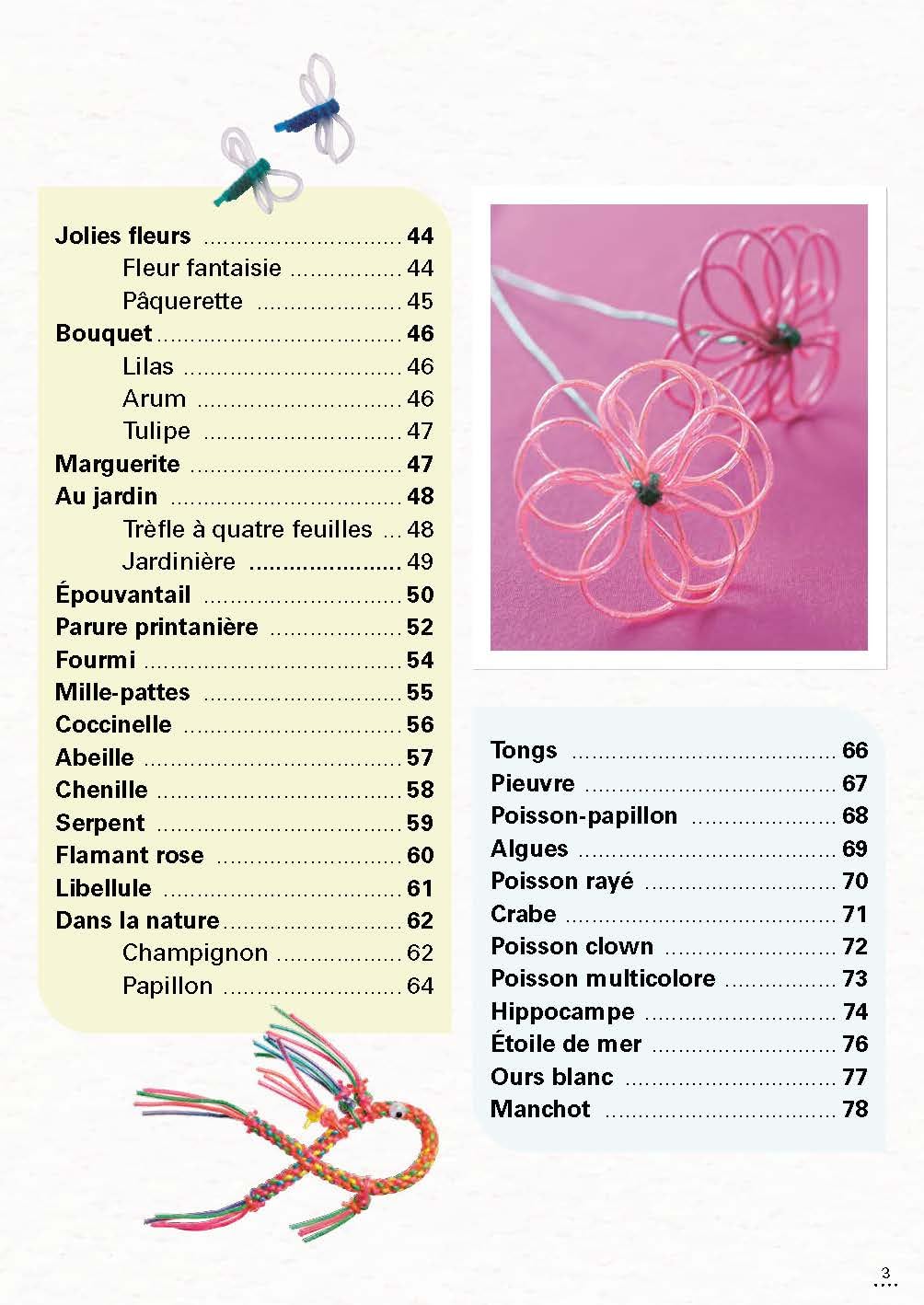 Une foule de réalisations plus amusantes les unes que les autres : fruits, légumes, sucreries, personnages, fleurs, insectes, animaux… Des pages d’ouverture joliment illustrées et des schémas explicatifs clairs en infographie pour ne pas emmêler les fils !