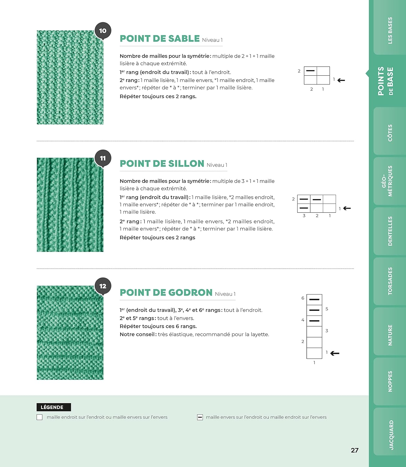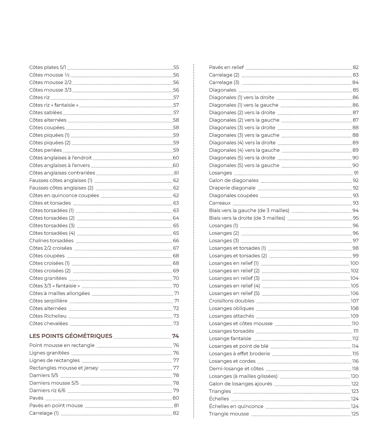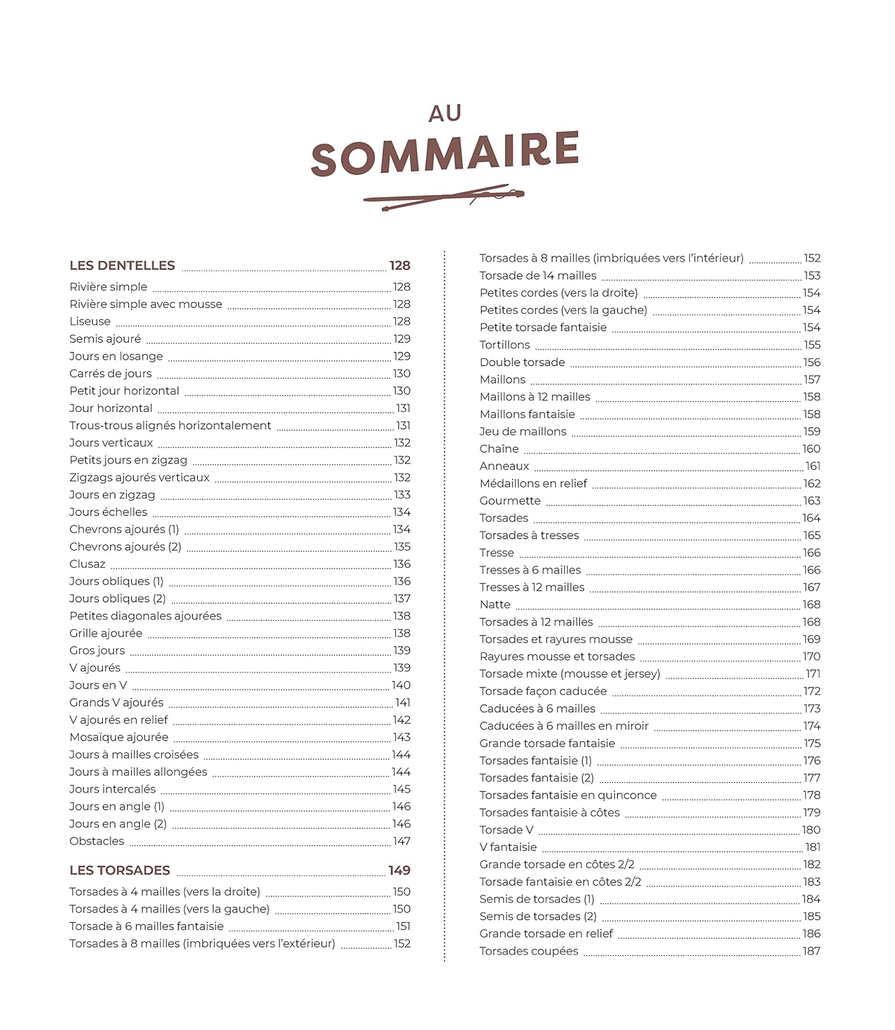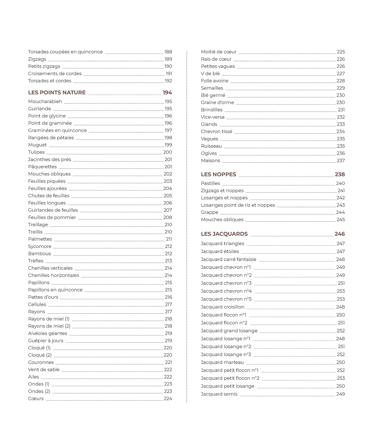 Tous les signes utilisés accompagnent chaque point pour une meilleure compréhension du diagramme. La classification par type de point permet une sélection rapide, selon l’aspect ou la technique, du point recherché. Un ouvrage indispensable à glisser entre ses pelotes de laine !