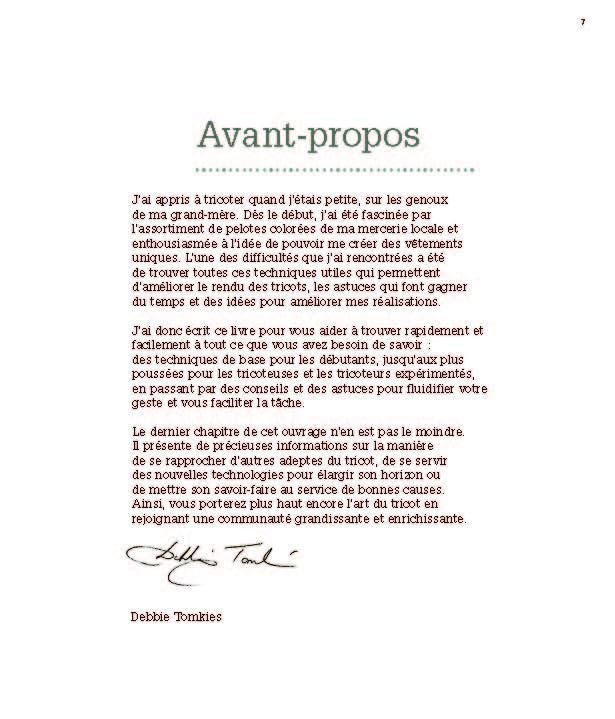 Une fois ces éléments maîtrisés, passez à la vitesse supérieure grâce aux conseils de Debbie Tomkies, pour soigner vos finitions et tous les détails qui font la différence. Vous pourrez enfin assimiler les techniques les plus complexes de tricot circulaire, de dentelle ou de jacquard.