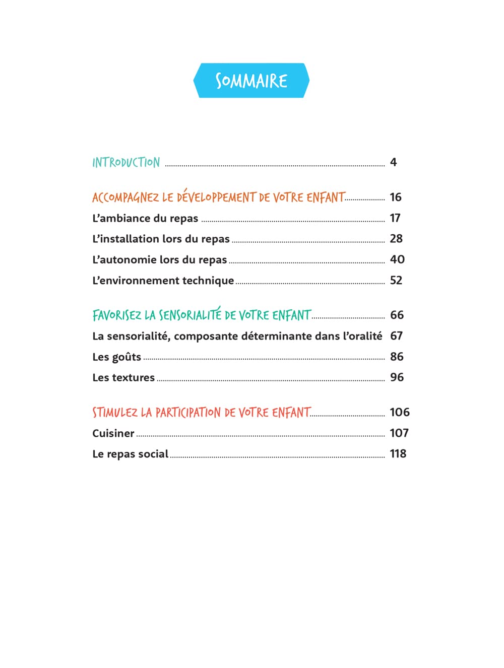 Foisonnant de conseils simples, d’astuces, de témoignages, ce livre rassurera les parents, aidera les enfants à varier leur alimentation et permettra aux repas familiaux de retrouver de la sérénité.