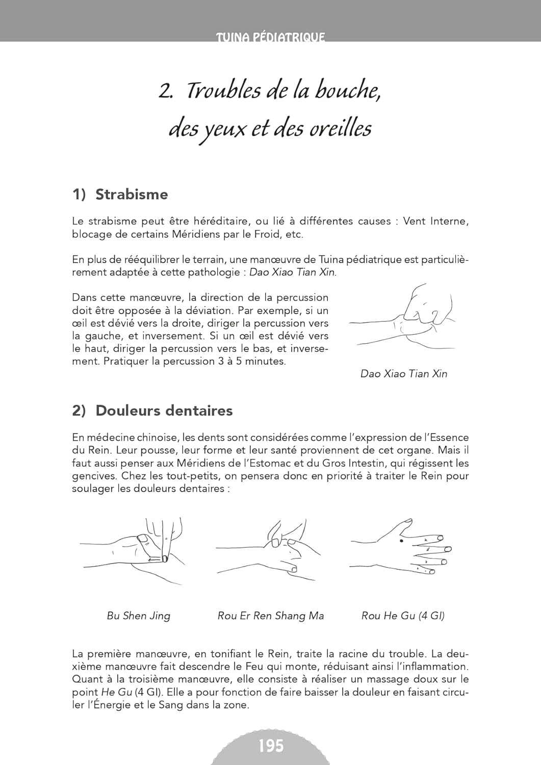 Pour la première fois en Occident le véritable massage traditionnel chinois, le Tuina, est dévoilé dans cet ouvrage. C’est une des perles de ce grand trésor qu’est la médecine traditionnelle chinoise. Dans la véritable médecine traditionnelle chinoise le massage Tuina tient une place encore plus importante que l’acupuncture, aussi bien dans le domaine médical que dans la pratique familiale.