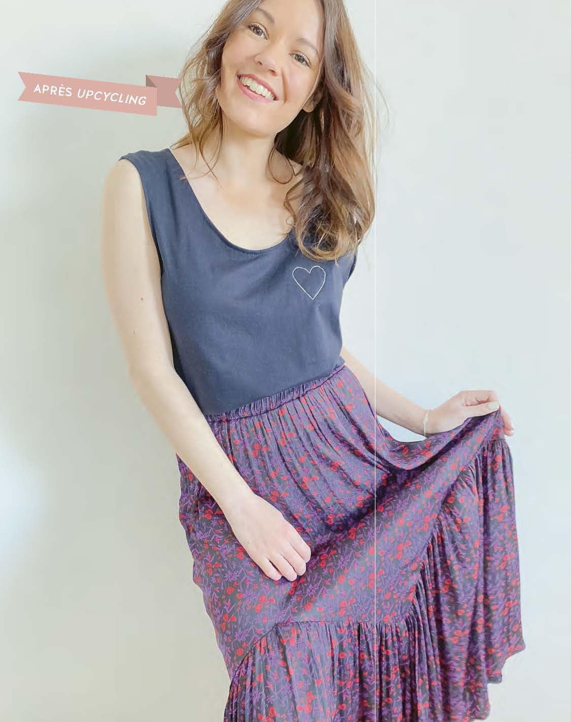 Dans cet ouvrage pratique et complet, elle donne toutes les bases pour bien commencer avant de se lancer dans l’upcycling d’une taie d’oreiller en chemisier, d’une robe en veste sans manches, d’un jean en sac banane… Ce sont en tout plus de 20 modèles uniques et inspirants pour une mode plus saine, sans nécessité de reproduction de matière première, revalorisée et toujours aussi belle !