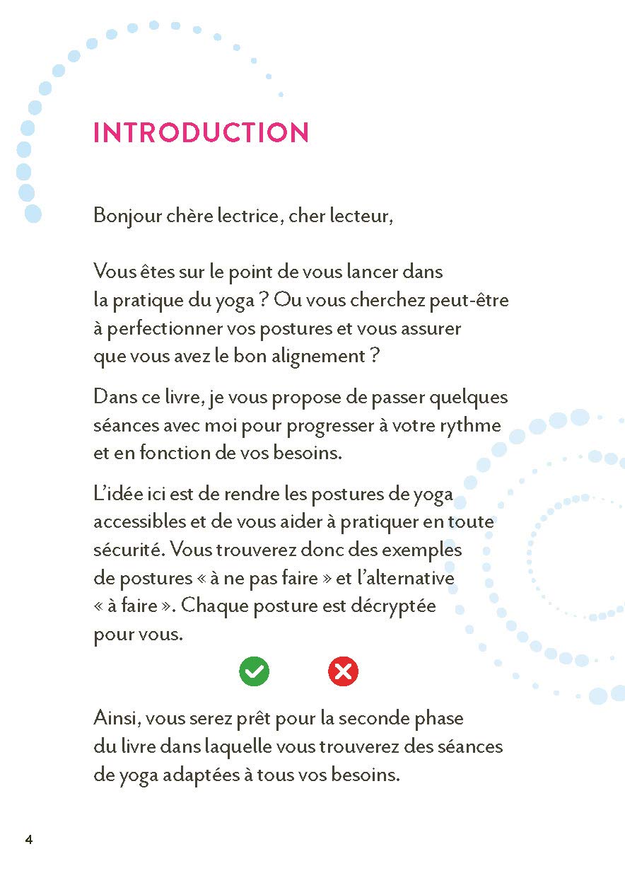 Ce livre vous donnera les principes théoriques et les fondements du yoga, et vous accompagnera pour vous initier en douceur et en sécurité. Vous apprendrez à exécuter correctement les postures basiques, à réaliser puis à construire vos propres séances selon vos besoins quotidiens.
