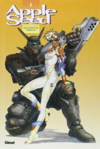 Publié entre 1985 et 1989, d’abord dans Comic Gaia puis chez Kōdansha, Appleseed se situe en 2127, après une Troisième Guerre mondiale qui a dévasté la planète. Les survivant·es affluent vers Olympus, une cité-État présentée comme une utopie, où cohabitent humains et bioroïdes — des êtres artificiels conçus pour stabiliser la société. Dunan Knut, ex-combattante, et Briareos Hecatonchires, son compagnon cyborg, intègrent l’unité ES.W.A.T. pour maintenir l’ordre — et découvrir peu à peu les failles d’un système qui n’est peut-être pas aussi parfait qu’il le prétend.