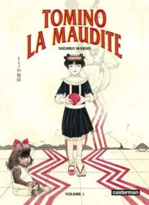 Tomino la maudite est, à ce jour, la série la plus longue de Suehiro Maruo — plus de 600 pages publiées entre 2014 et 2018 dans le magazine Comic Beam. Son titre s’inspire d’un poème maudit de Yaso Saijô publié en 1919, L’Enfer de Tomino, qui a engendré une légende urbaine tenace : quiconque le lirait à voix haute serait frappé par une malédiction mortelle. Maruo propose ici sa propre vision de ce texte cryptique et y greffe ses thèmes de prédilection : l’innocence avilie, le cirque, le Grand-Guignol. L’édition française chez Casterman (deux volumes épais, format cartonné, traduction impeccable de Miyako Slocombe) contient en bonus une interview croisée entre Maruo et le mangaka Atsushi Kaneko. Le manga a remporté le prix Asie de la Critique ACBD en 2021.